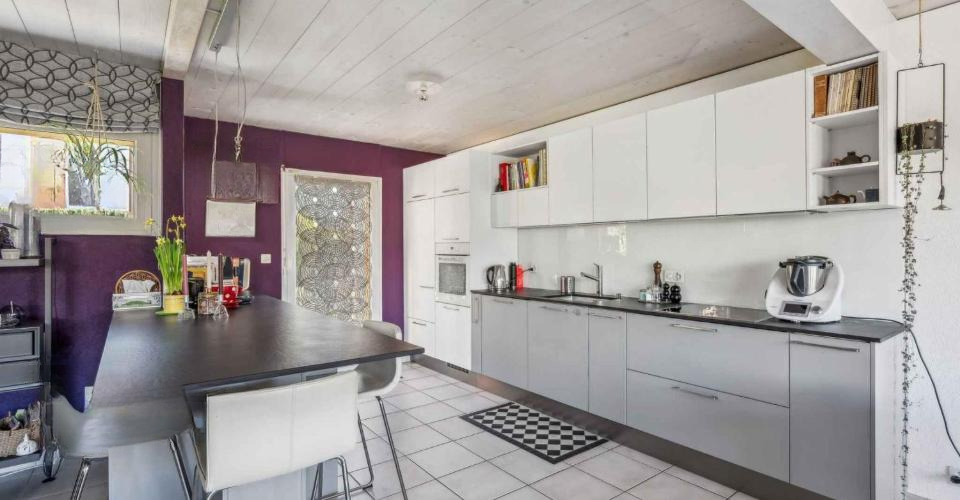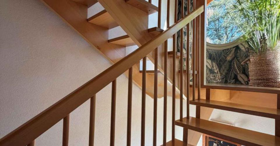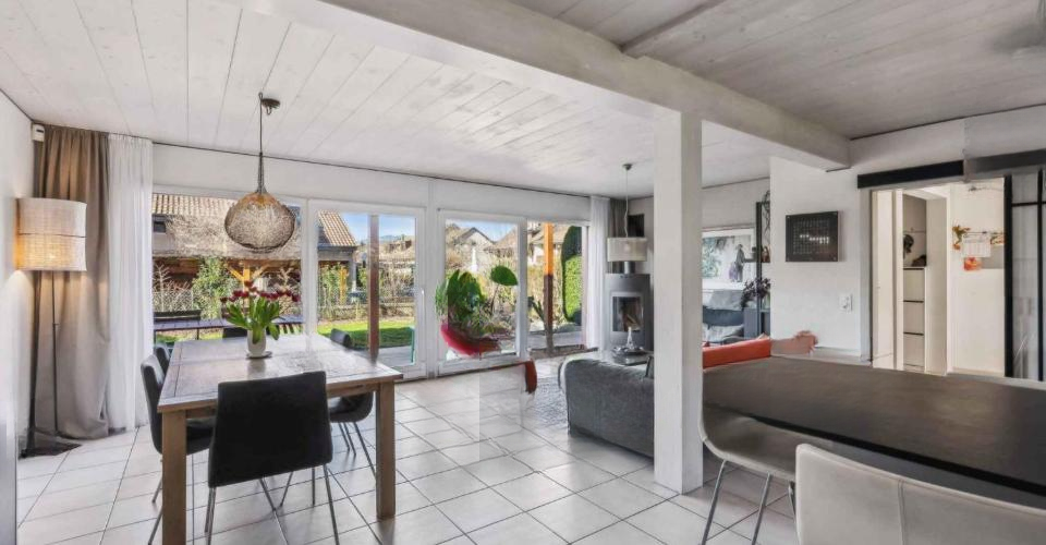 Построенный в 1999 году и тщательно поддерживаемый со временем, этот красивый двухквартирный дом с деревянным каркасом предлагает просторные жилые помещения площадью около 190 м² (280 м² общей площади) и два сада с террасами примерно по 100 м² каждый, один выходит на юго-запад, другой — на восток.