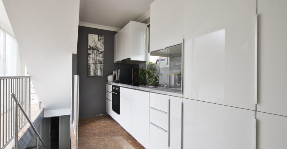 На первом этаже расположены гостиная с кухней, спальня и ванная комната с туалетом. На втором этаже две спальни, одна из которых с террасой, и ванная комната с туалетом. В подвале находится спальня, ванная комната, душевая с туалетом и техническая комната. На втором уровне подвала — мини-кухня, выходящая в гостиную, душевая с туалетом и спальня.