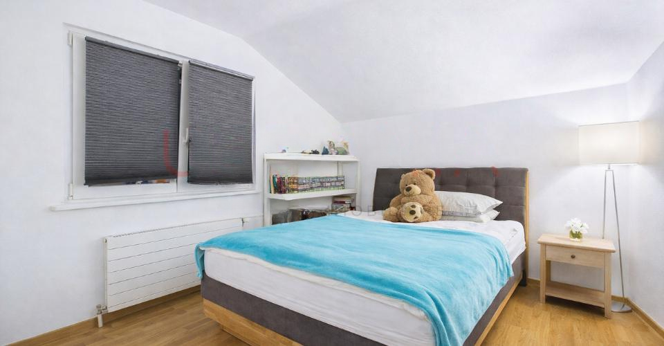 На втором этаже расположен коридор с встроенными шкафами, две большие спальни, одна из которых с встроенной гардеробной, а также полная ванная комната с ванной и душем.
