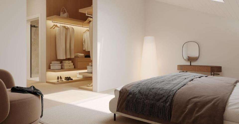 В мансарде расположена светлая мастер-сьюит с возможностью обустройства гардеробной и прилегающей ванной комнатой. Гибкое пространство, которое можно использовать как вдохновляющий офис или преобразовать в небольшую спальню, также находится на этом уровне.