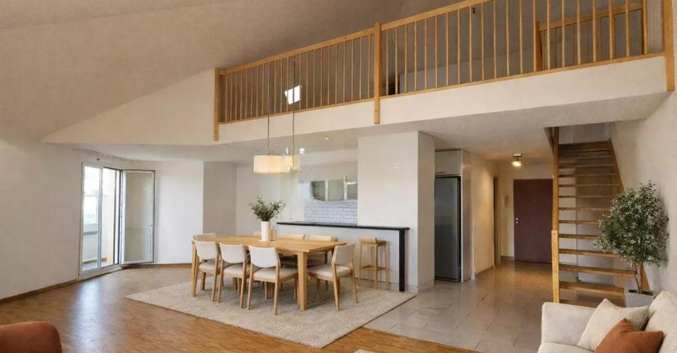 Из гостиной лестница ведет на просторную 90 м² антресоль с мансардным окном, обеспечивая обилие естественного света. Это дополнительное пространство предлагает множество вариантов планировки, включая создание третьей спальни, офиса или зоны отдыха.✨