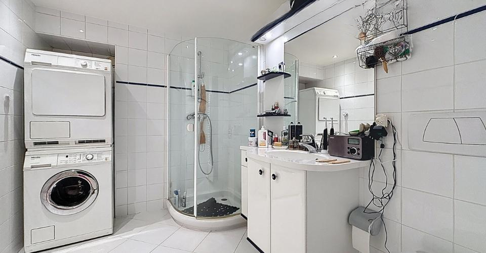 Первый этаж включает в себя: прихожую с обеденной зоной, украшенной открытыми балками, гостиную с камином, отдельную кухню, гардеробную и гостевой туалет, погреб с примыкающим гаражом и доступ по лестнице в помещение, напоминающее сарай, с значительным потенциалом для развития. К дому прилагаются два сада площадью 100 м² и 140 м², расположенные спереди и сзади. Рядом имеется обширная парковочная зона, вмещающая 5-6 автомобилей, а также второй закрытый гараж с доступом к переоборудованной мансарде.
