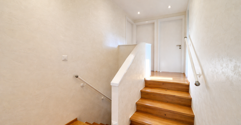 Дом, расположенный на трёх полууровнях, светлый и хорошо спланирован. На нижнем этаже находится вход, спальня, большой оборудованный гардероб, душевая комната и две дополнительные комнаты, которые можно использовать как офис, спортзал или кладовую, а также техническое помещение.