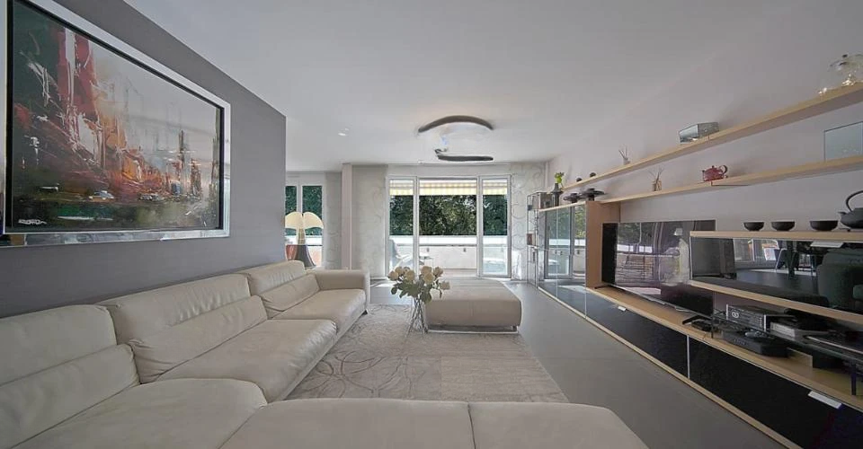 - красивую гостиную, открывающуюся на большой балкон площадью 18 м² с видом на лесной парк площадью 1350 м²,