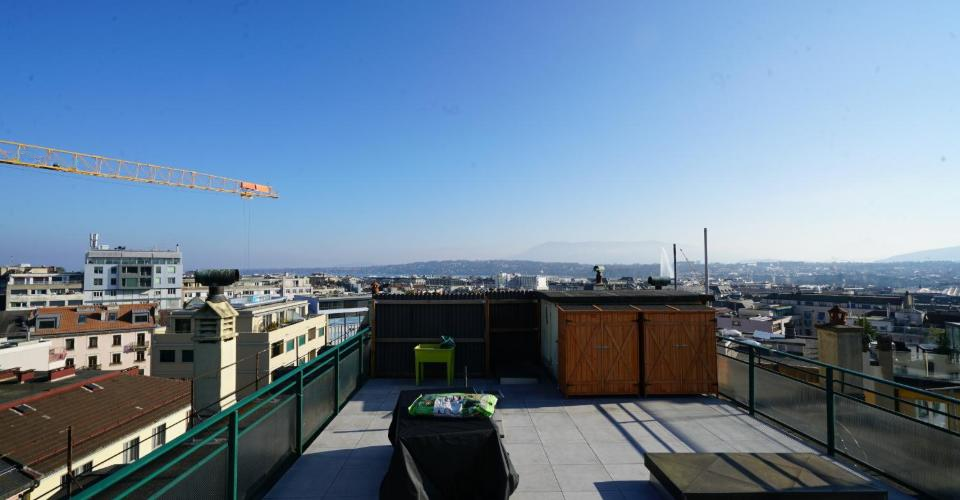 7-й этаж - Исключительный пентхаус - 169 м² PPE с четырьмя балконами (16 м²). Великолепные виды на Женеву, фонтан Женевского озера, Собор и Альпы. Частный доступ на лифте на 7-й этаж и эксклюзивное использование большой террасы на крыше.