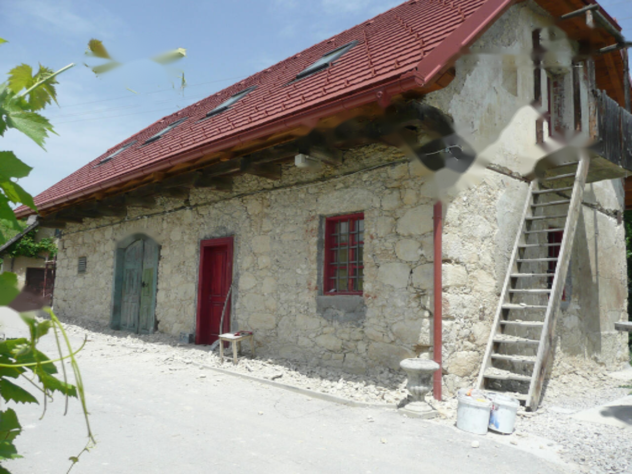 Дом оборудован отоплением через воздушный камин и подключен к электросети, водоснабжению и септику. Обновлённые элементы включают новую крышу (2008 г.), статическую санацию и сейсмическую защиту (2009 г.), а также обновлённый фасад и интерьер (до 2013 г.). Основная жилая площадь составляет 46,6 м². Большая часть мебели входит в стоимость.