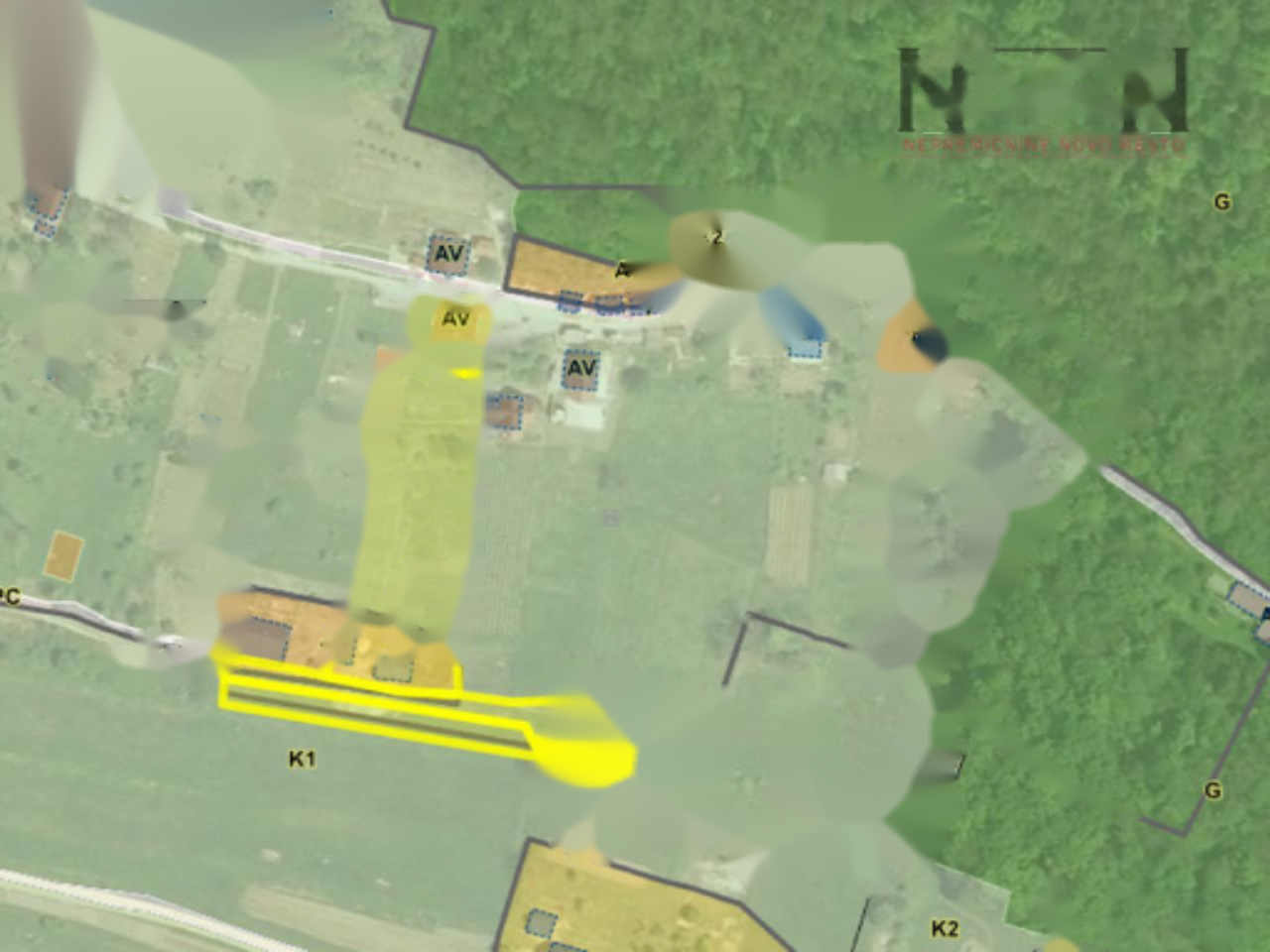 Текущая структура состоит из подвала и первого этажа, соединенных внешней деревянной лестницей; мансарда не обустроена. На территории находится дополнительное сельскохозяйственное строение, построенное в 2018 году, но не подключенное к публичным сетям. Земельный участок площадью 4.044 м² расположен под небольшим уклоном и открывает великолепный вид на реку Крка и окружающие холмы с лесом. Доступ к дому осуществляется по общественной асфальтированной дороге, с последними 100 метрами по гравийной дорожке, альтернативный доступ также возможен по другой асфальтированной дороге.