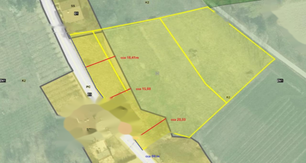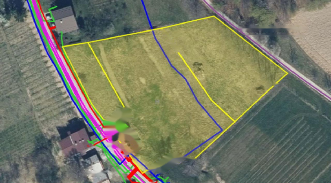 Недвижимость располагается на окраине поселка с открытой восточной ориентацией. Земля делится на две части: верхняя часть является застройкой, где находится старый дом, а остальная часть используется как сельскохозяйственные угодья. Участок простирается от асфальтированной дороги вниз по холму, обеспечивая место для жилья и сельского хозяйства. Коммуникации — электричество и вода — находятся вблизи.
