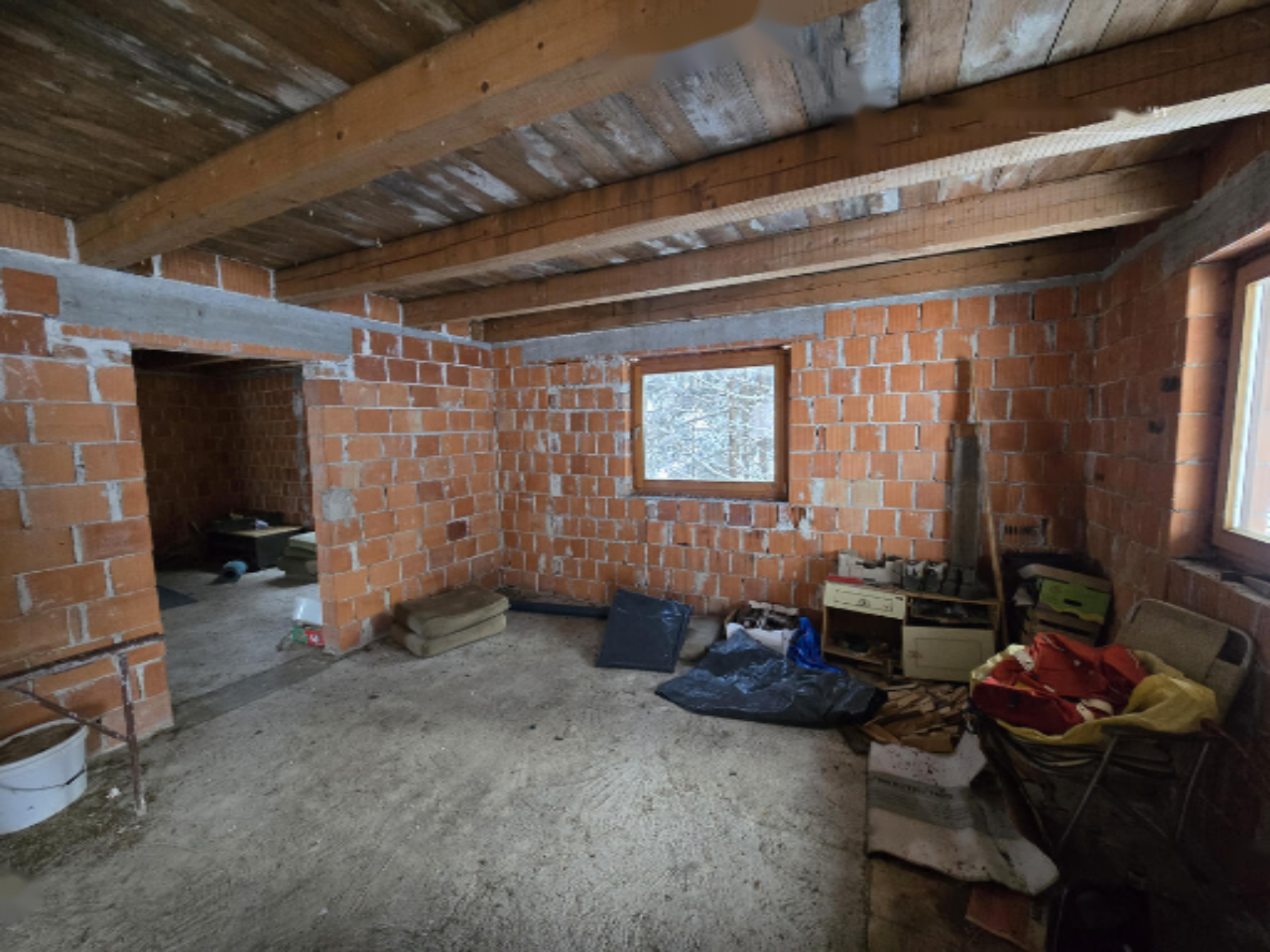 Дом обладает официальным адресом, строительным и местоположенческим разрешениями и подключен к электроэнергии. Воды поступает из собственного источника. Необходима также организация системы отопления и утепление здания.