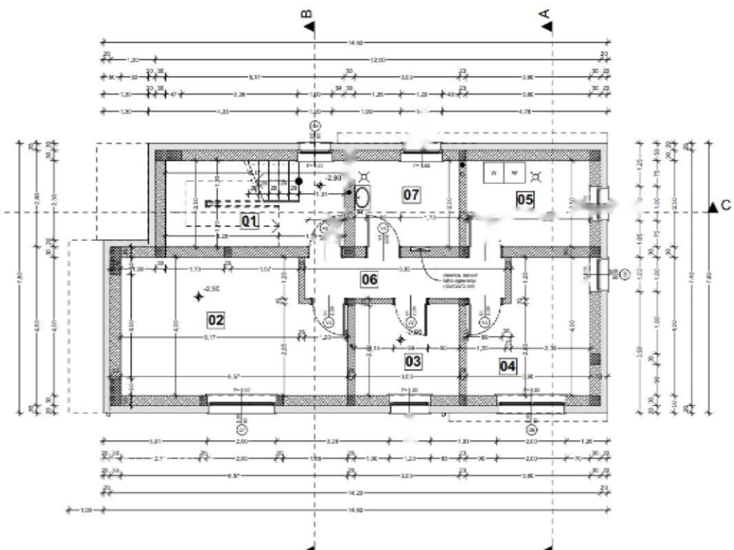 Архитектурное решение предусматривает в подвале размещение сервисных помещений, велосипедной комнаты и кладовых. На первом этаже расположено четырехкомнатное жилье, на втором этаже — четырехкомнатное и полуторное жилье. Внешние территории включают в себя четыре парковочных места. Проект разработан с предоставлением планов этажей, разрезами, внешним оформлением и визуальными моделями. Строительное разрешение действительно до первой половины 2027 года. Проектная документация для реализации (ПЗИ) готова.