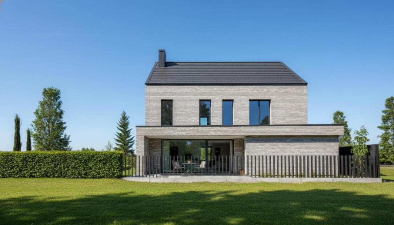 Проект жилого дома разработан с учетом особенностей участка и позволяет гибкость в планировке. Здание предусматривает большую жилую зону, кухню, столовую, гостевой туалет, главную спальню с собственной ванной комнатой, три детские комнаты (одна из которых может быть использована как кабинет) и ванную для детей. Также есть возможность дополнительно обустроить мансарду.