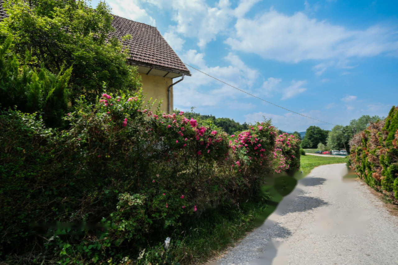 Земельный участок находится в живописном пригороде с характерным сельским ландшафтом, сохраняя атмосферу спокойствия и уединенности, в то время как доступ до центра Любляны и объездной дороги максимально удобен.