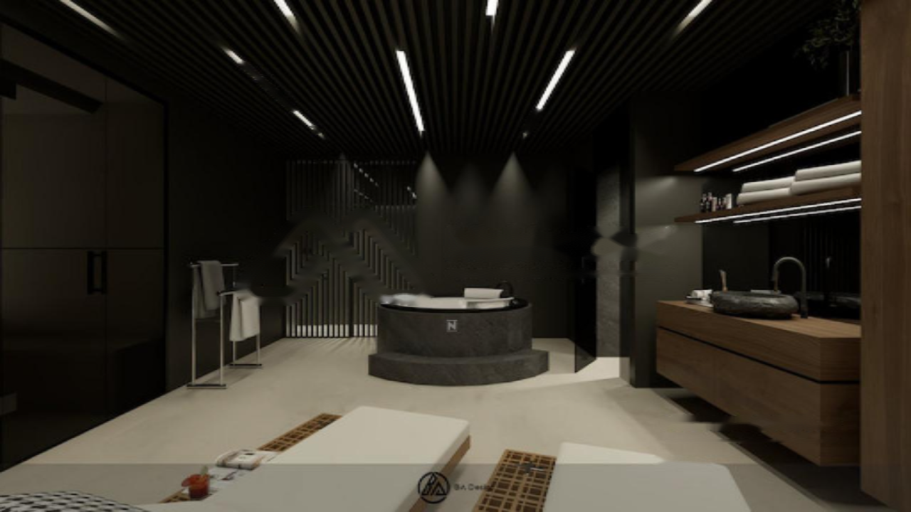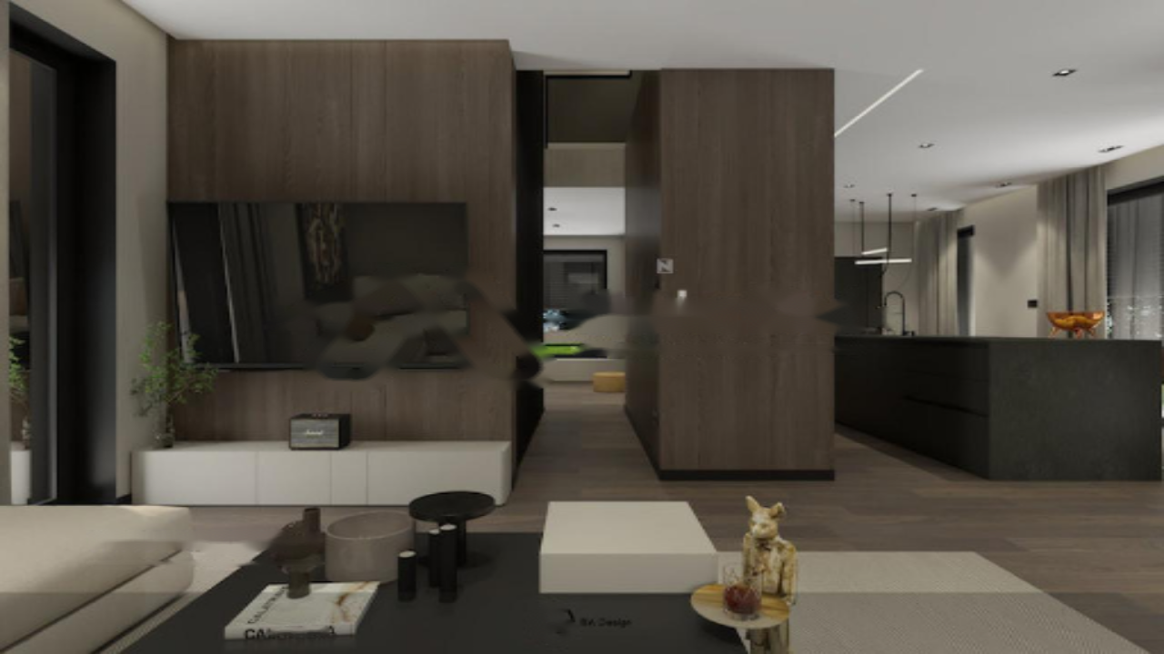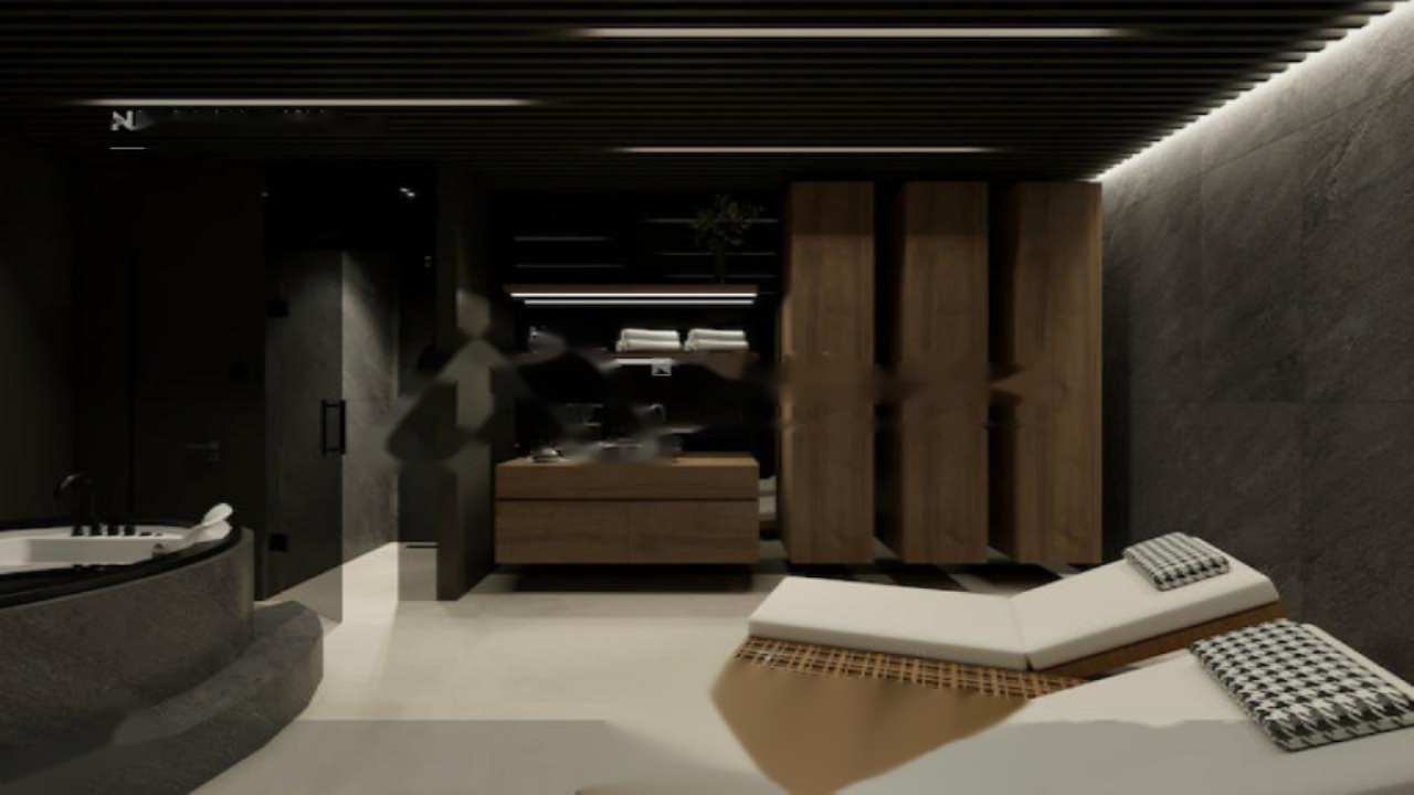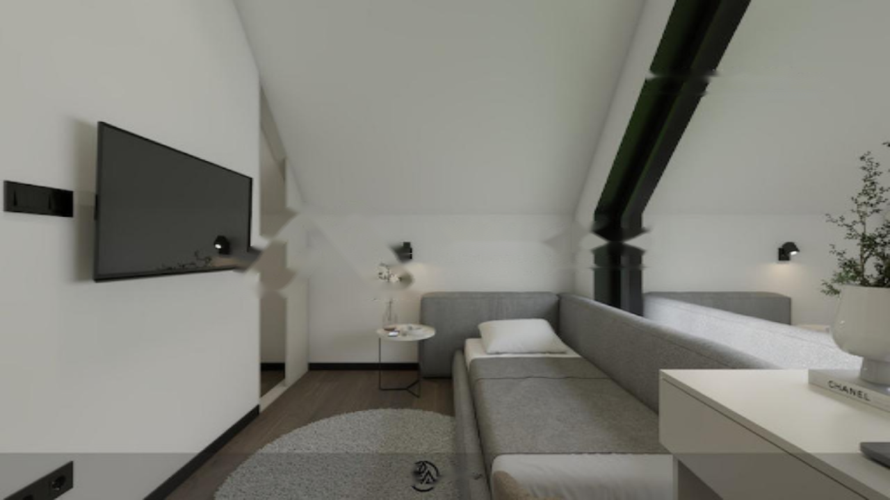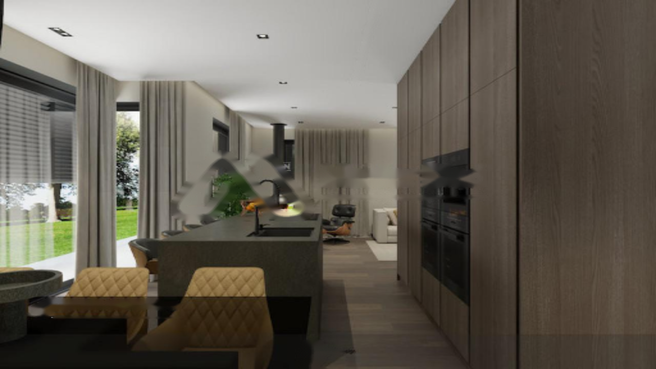 Архитектурное решение предполагает строительство современной альпийской резиденции с полностью разработанной 3D визуализацией экстерьера и интерьеров. Дом будет включать открытые пространства с галереей над жилыми помещениями и предлагает все современные удобства, включая:
