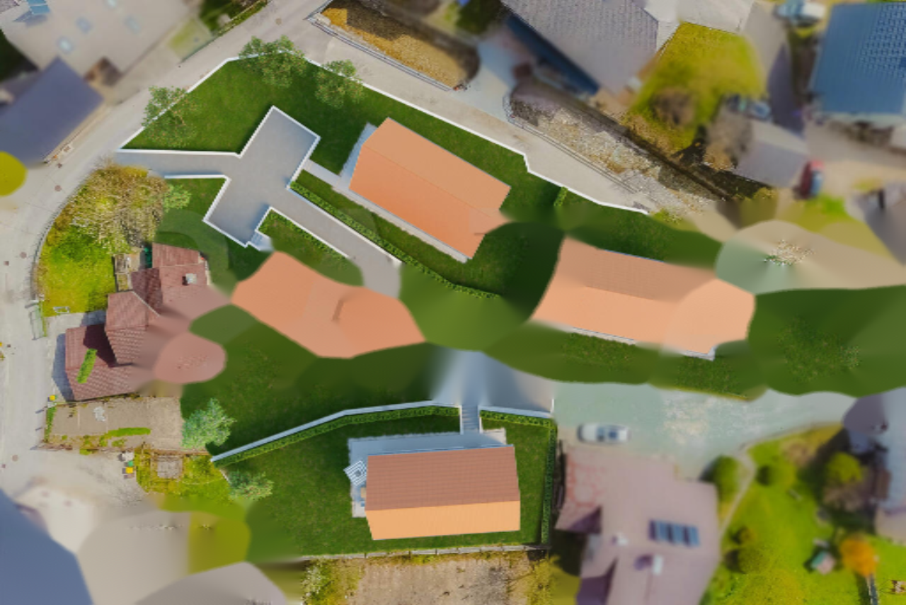 Намечаемое развитие участка согласно местному зонированию позволяет строительство 3-4 малоэтажных жилых домов или небольшого многоквартирного дома с до 3 квартирами. Архитектурные требования придерживаются традиционного гореньского стиля с двускатной крышей и светлыми фасадами. Допустимые высоты строительства: этажность плюс мансарда (P+1+M).