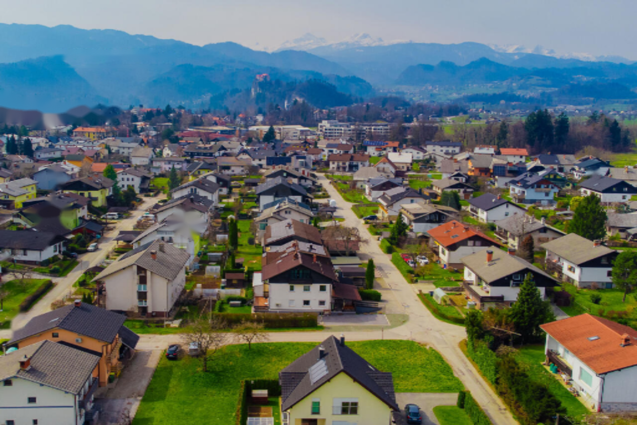 В окружении имеются многочисленные зеленые зоны и прогулочные маршруты, что способствует комфортному проживанию. Ближайшие магазины и автозаправочная станция располагаются в 500 метрах, а знаменитое озеро Блед — в 1,6 км от участка.