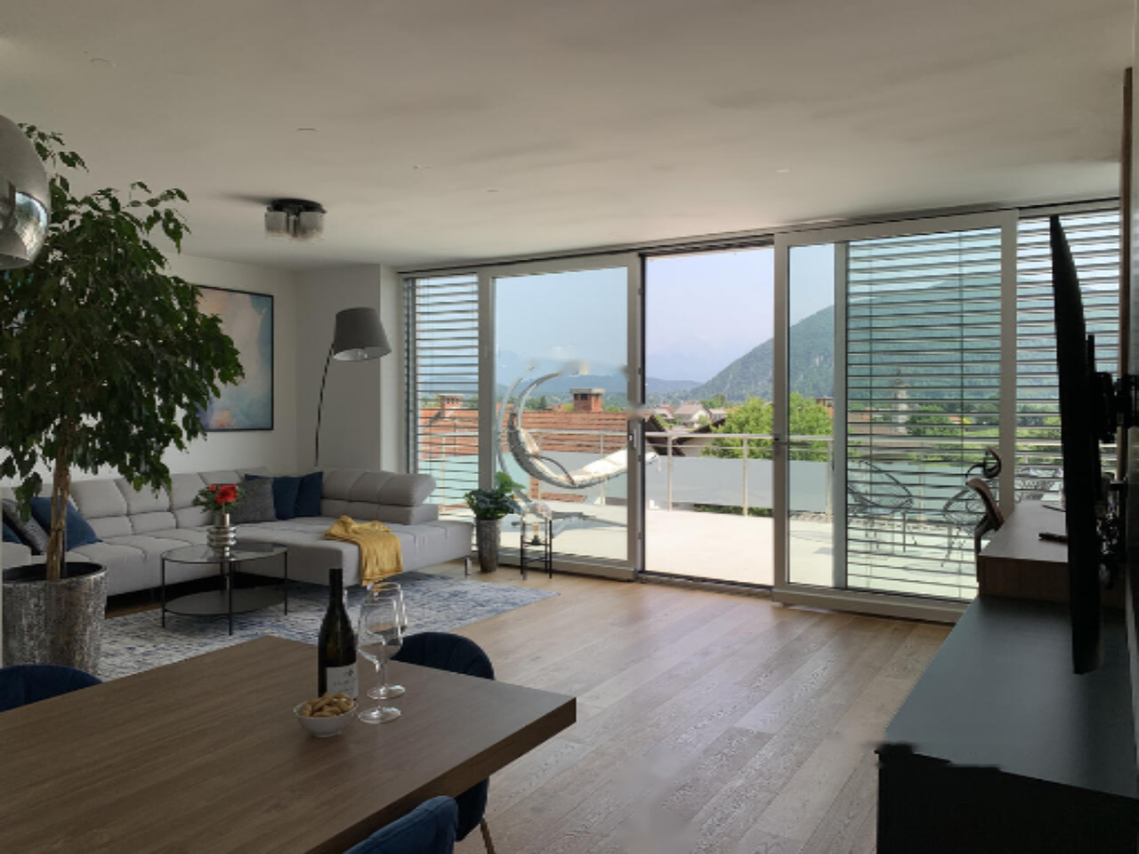 На втором этаже можно устроить отдельную жилищную единицу с собственным входом или использовать как часть дома. Здесь расположены большая гостиная, кухня, столовая с выходом на террасу, две просторные спальни и ванная комната.