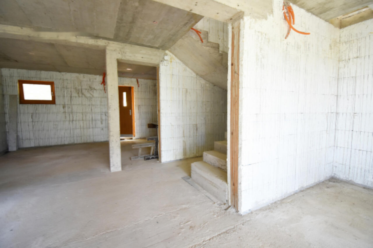 Дом построен в 2014 году с использованием энергоэффективной системы QuadLock, которая обеспечивает высокую теплоизоляцию: 10 см снаружи и 5 см изнутри. Это позволяет поддерживать комфортный микроклимат в помещении круглый год. Крыша выполнена из качественных черепиц, а окна и двери сделаны из натурального дерева. Электричество и водоснабжение проведены, а для стоков предусмотрена установка малой очистной станции.