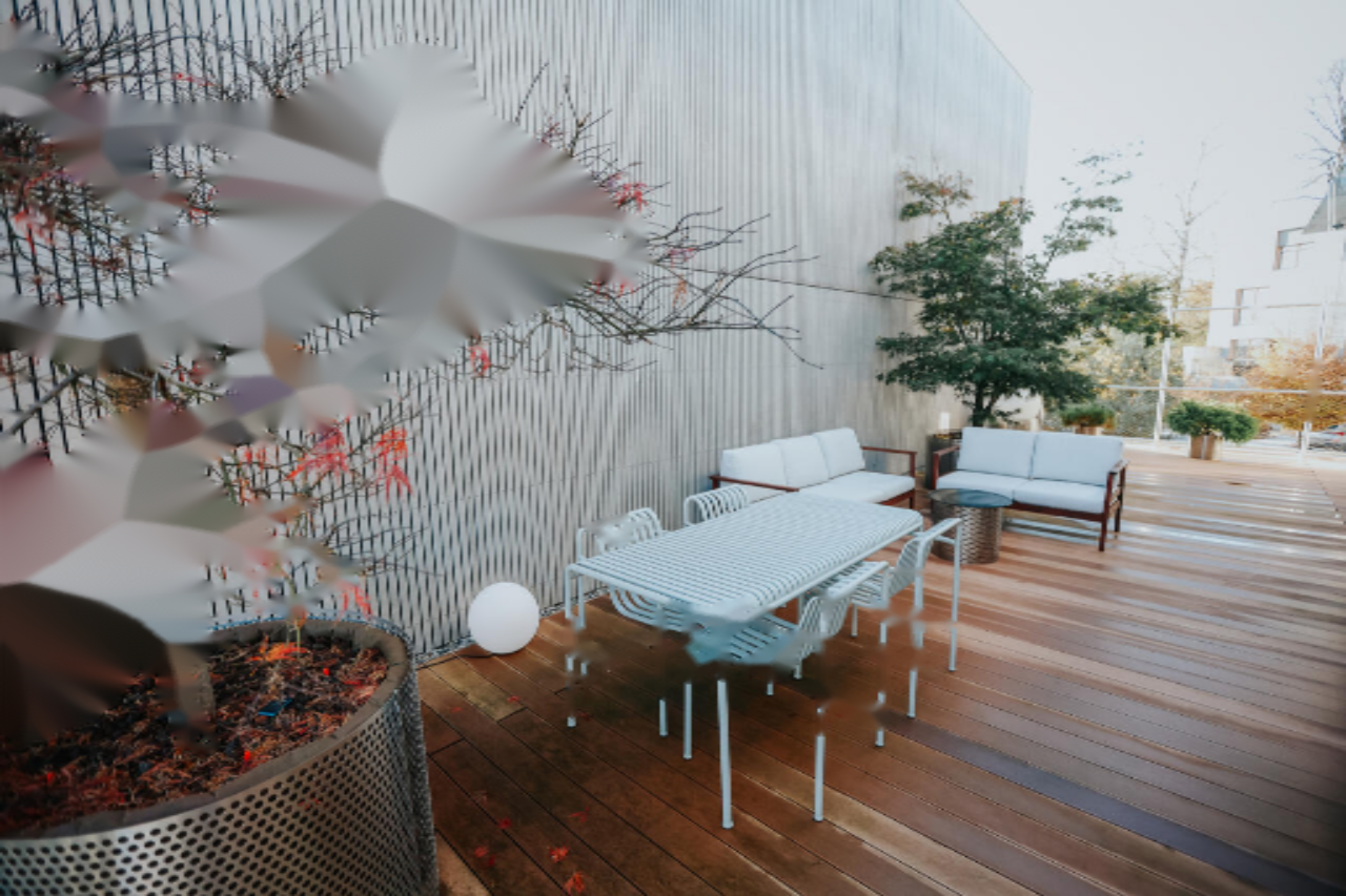 Современные удобства включают три спальни, две ванные комнаты, две привилегированные парковочные места и гараж. Терраса с девятью японскими кленами имеет автоматическую систему полива, а в гараже и на террасах предусмотрено напольное отопление. В доме установлены воздухоочистители и кондиционеры, система оптического интернета, дверь с противовзломной защитой и сигнализация.