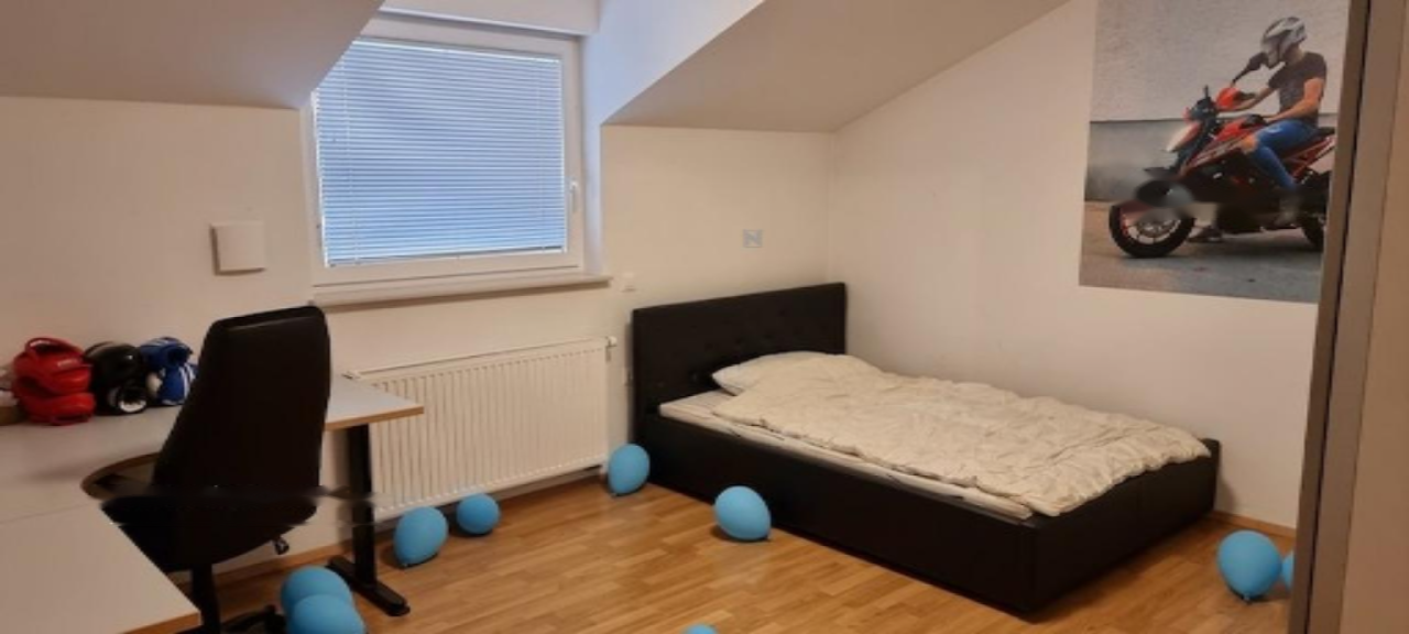 Дом состоит из первого этажа, который частично вкопан, второго этажа с отдельным входом и мансарды. Первый этаж включает в себя прихожую, коридор, кухню, гостиную, спальню, детскую комнату, ванную и котельную. Второй этаж с главным входом предлагает прихожую, коридор, кухню с обеденной зоной, ванную, туалет, гостиную и спальню. В мансарде находятся ванная, кладовая и три комнаты, где возможно разместить кухню, так как все подключенные коммуникации присутствуют.