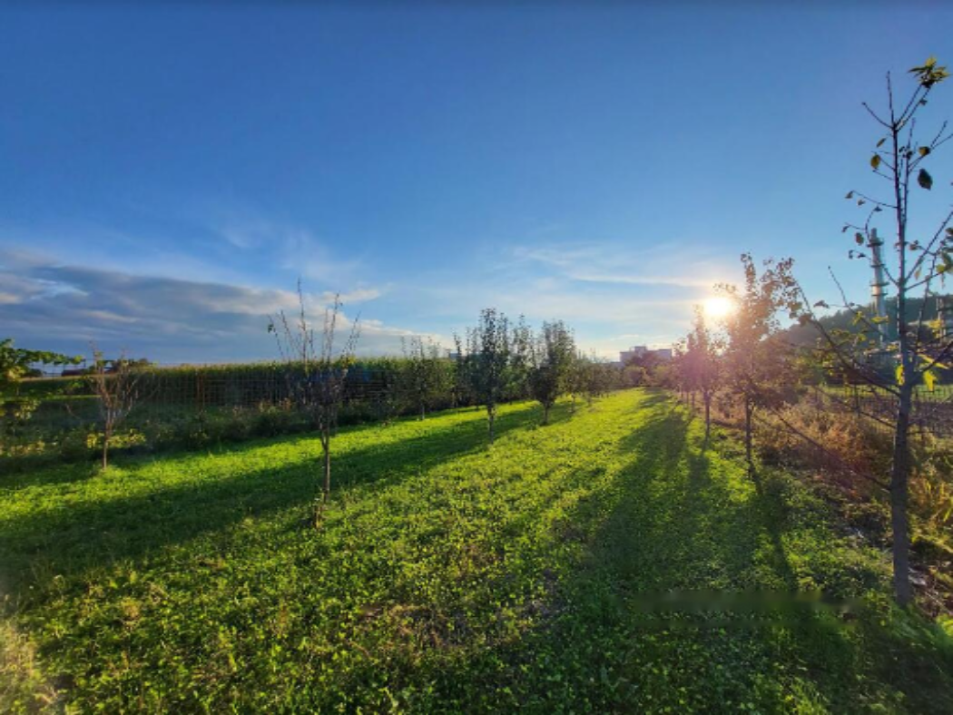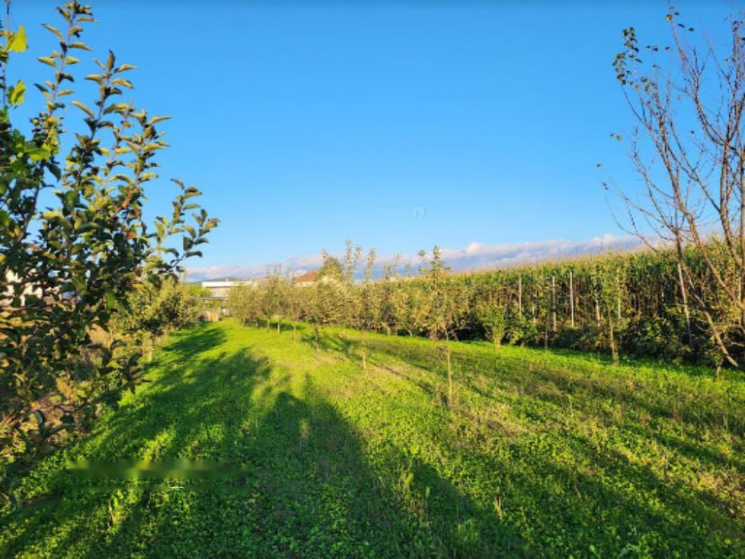 Внешняя благоустроенная территория включает подъездную дорогу, парковку, большую огороженную территорию и фруктовый сад. Земля предназначена как для строительства, так и для озеленения. Дом ориентирован с востока на запад.