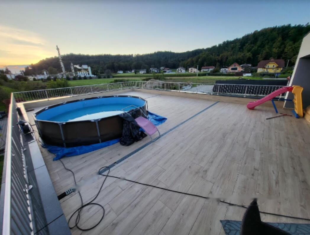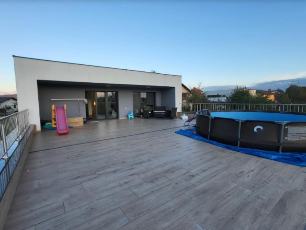 Расположение объекта в районе с тихой и ухоженной инфраструктурой новых построек. Вся необходимая инфраструктура доступна поблизости, быстродоступны Любляна и автомагистраль. Отопление осуществляется посредством теплового насоса (воздух-вода) с полами с подогревом. Дом оснащён всеми необходимыми коммуникациями, включая оптику и канализацию.