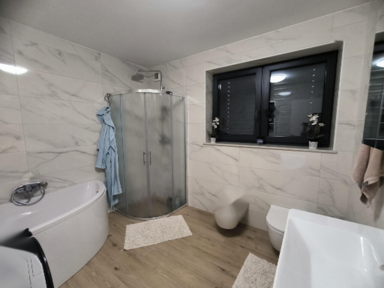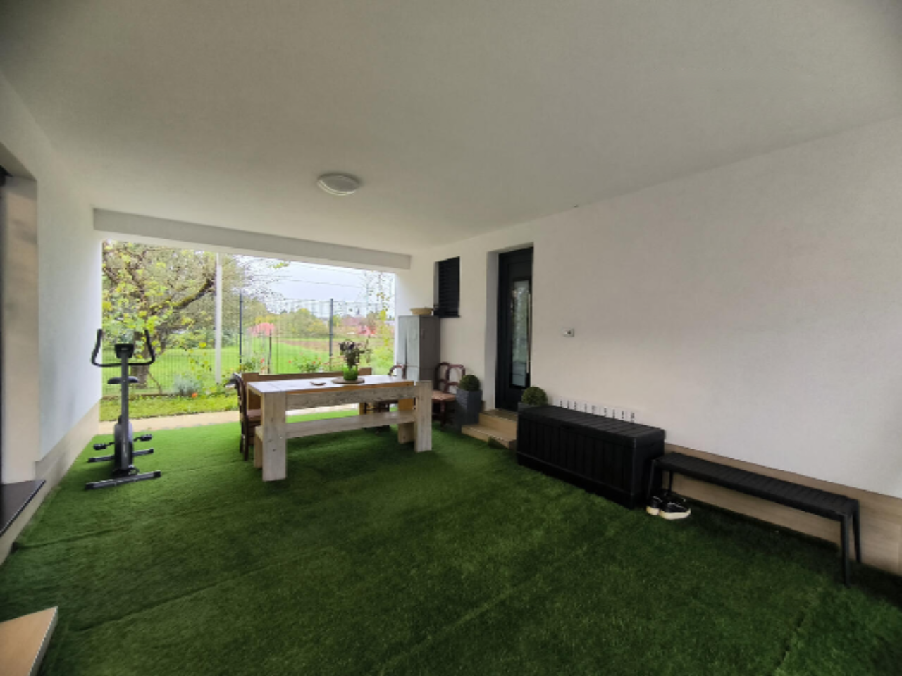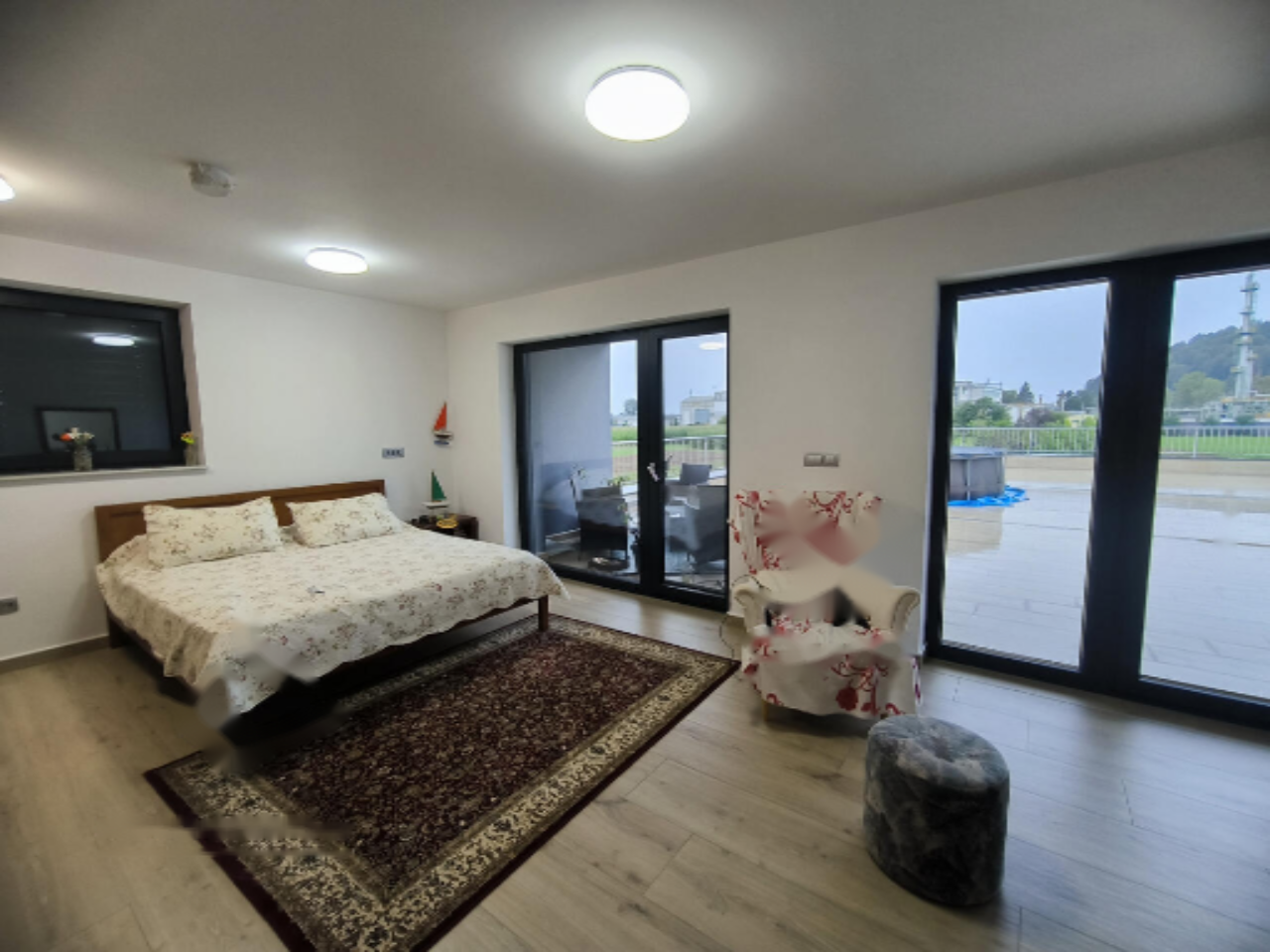 Предлагается к продаже современный одноэтажный дом общей площадью 252 м², построенный в 2019 году с использованием качественных материалов. Объект расположен на тихой улице в Чрнучах, в окружении живописного зелёного окружения. Участок площадью 2.732 м² частично пригоден для застройки, частично используется как сельскохозяйственный. Дом гарантирует высокую степень приватности благодаря расположению на последней линии застройки.
