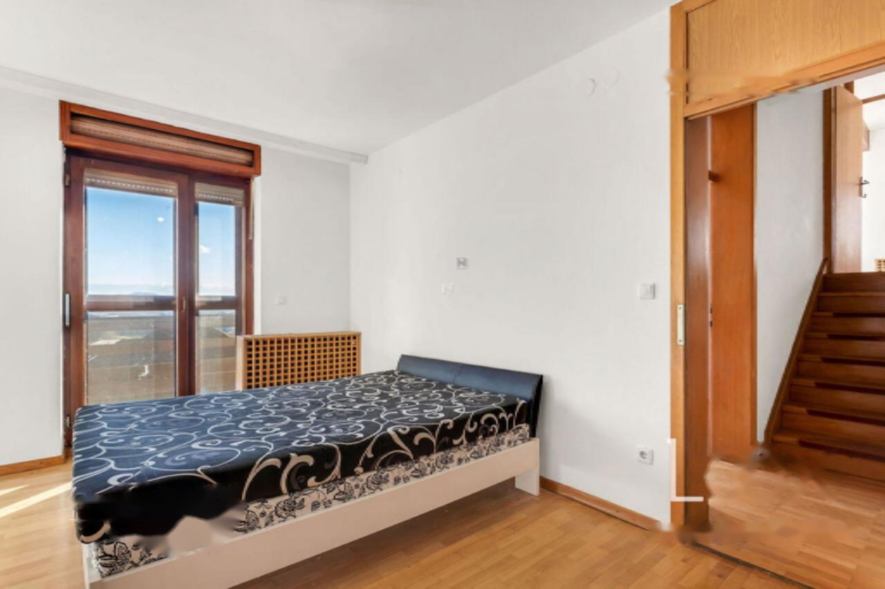 Особенности этой недвижимости включают в себя просторную жилую площадь и удачную планировку. На первом этаже расположен вход через гараж или лестницу, где можно найти прихожую, ведущую в гостиное пространство с обеденной зоной и кухней, дневной туалет, спальню и просторную комнату с выходом на террасу. На втором этаже расположены три спальни с выходами на балконы, ванная комната и дневной туалет. Мансарда включает большой жилой зал, ванную комнату и дополнительную комнату, а также доступ на неиспользуемый чердак. В полуподвальном уровне находятся два отдельных блока: один жилой с большой комнатой, кухней, ванной и утилитарной зоной, другой технический с гаражом и техническими помещениями.
