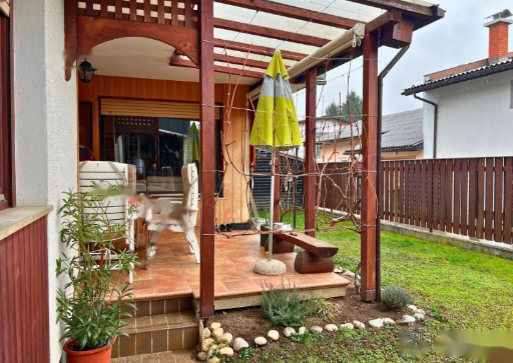 На участке расположены гараж, терраса и огороженный двор с тремя парковочными местами. Окружение обеспечивает удобный доступ ко всей необходимой инфраструктуре, включая автобусную остановку, детские сады и школы, а также возможность заниматься рекреацией вблизи природы.
