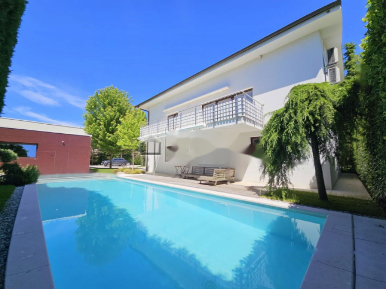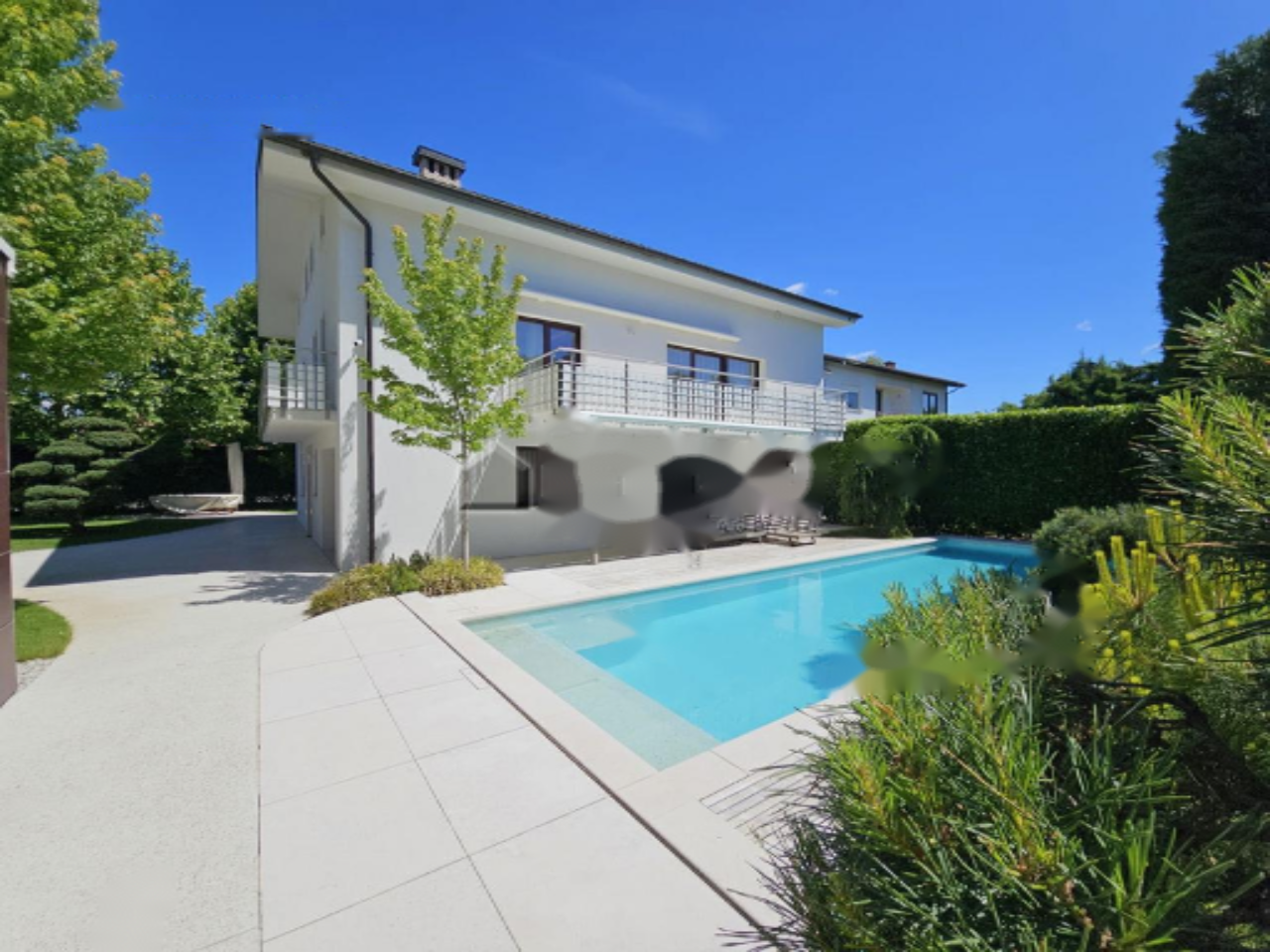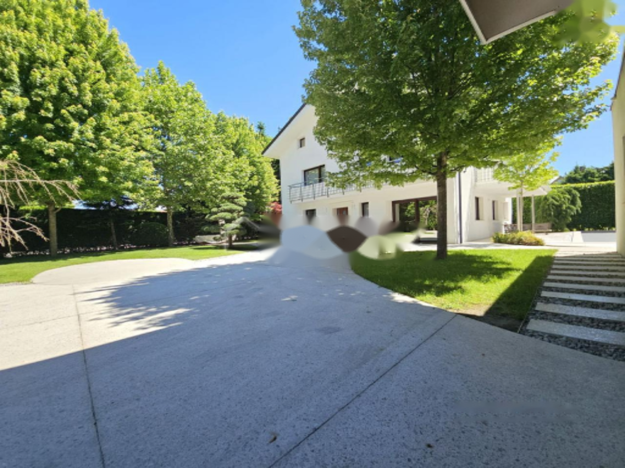 На участке расположен красивый ухоженный сад, который гарантирует полную приватность, и прямоугольный бассейн размером 13,5 м на 4,5 м и глубиной до 1,85 м, отапливаемый тепловым насосом. Простор для многочисленных приёмов и мероприятий обеспечен благодаря соединению первого этажа с садом, а также благодаря наличию дополнительных зон для больших мероприятий. Все территории вокруг дома выполнены из отполированного бетона.