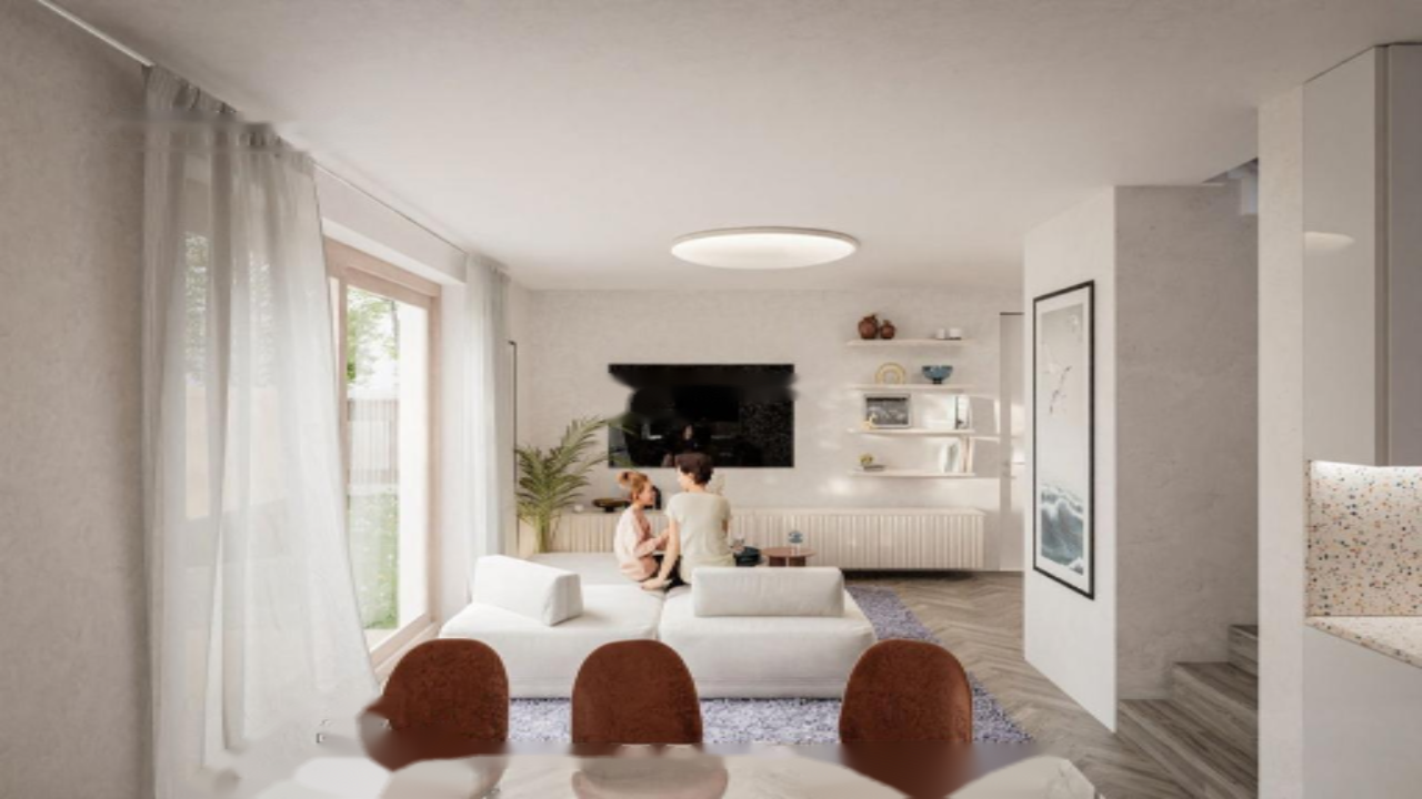 Дом, расположенный в пятой строительной фазе, продается "под ключ" и располагает террасой и ухоженным садом, что создаёт идеальные условия для отдыха на свежем воздухе с красивым видом и близостью к природе.
