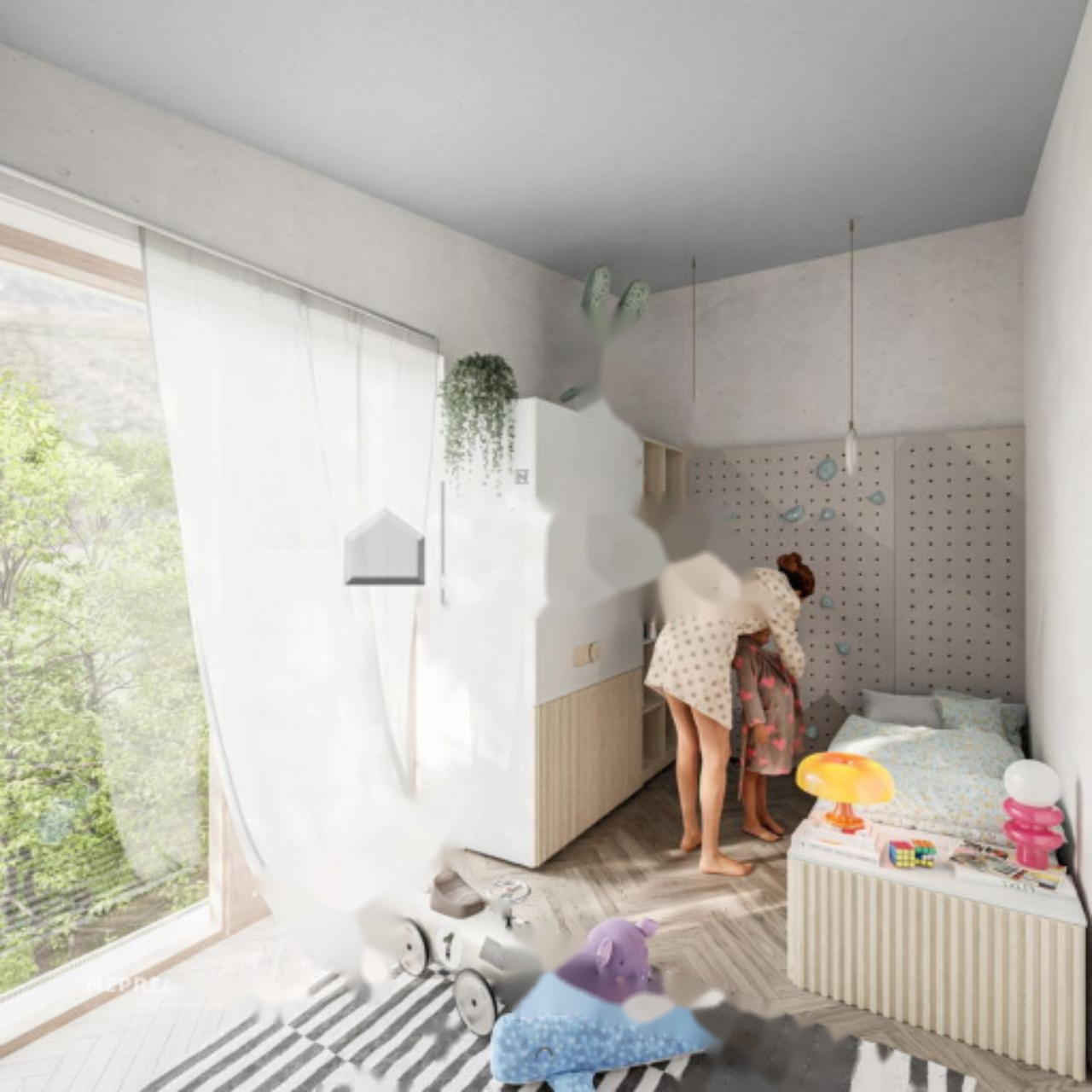 Третий этаж отведён для детей — здесь две светлые комнаты, идеально подходящие для игр, учёбы и творчества. Также на этаже находятся современная ванная комната и отдельная прачечная, обеспечивающие дополнительный комфорт в повседневной жизни.