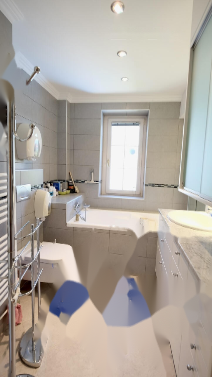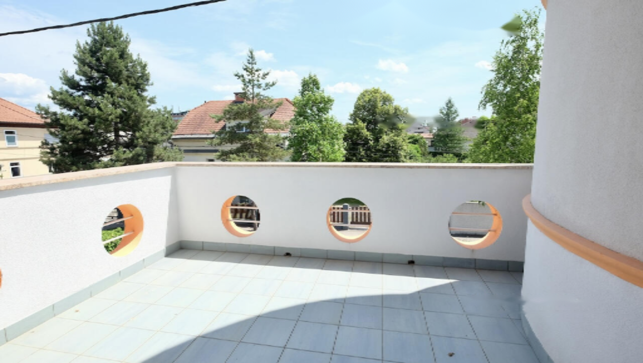Основные преимущества данного дома включают обширную жилую площадь с идеально обустроенными помещениями. В подвале находятся хозяйственное помещение и две большие комнаты. На первом этаже расположены кухня, просторная столовая с выходом на балкон, светлая гостиная, рабочий кабинет и отдельный гостевой туалет. На втором этаже находятся две просторные спальни, каждая с выходом на террасу, а также ванная комната. В мансарде оформлен ещё один рабочий кабинет или небольшая комната.