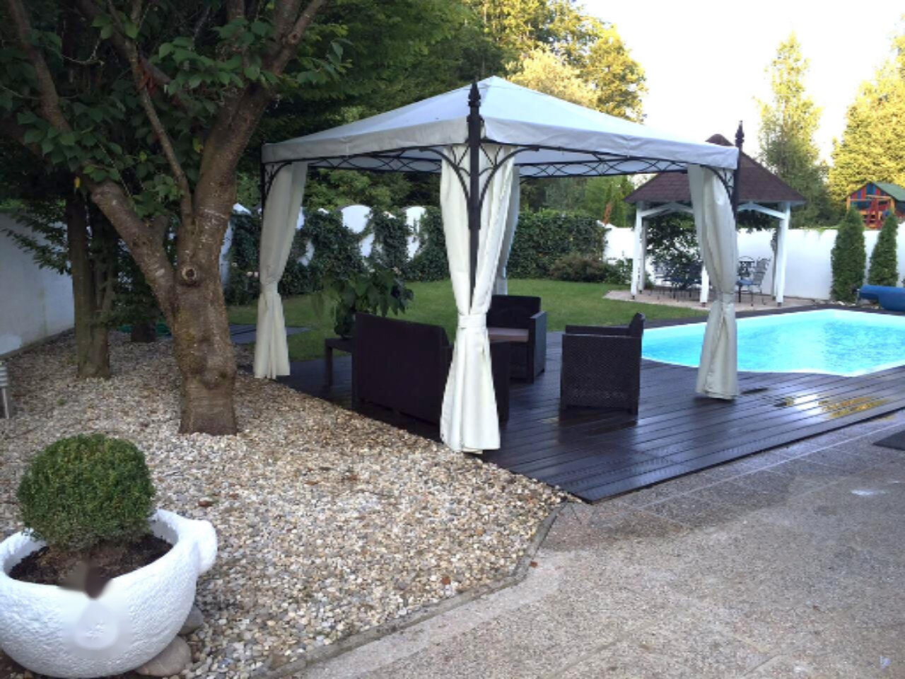 К числу преимуществ дома относится половое отопление, оптоволоконный интернет, охранная система и видеодомофон. Инфраструктура богата, а дом находится вблизи природы, что способствует качественной жизни и отдыху.