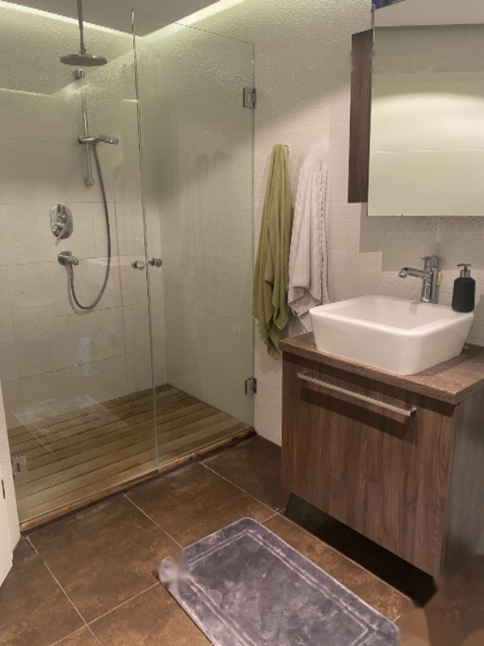 Дом полностью меблирован. Каждая этаж оборудован отдельной системой кондиционирования Daikin. Утепление осуществляется с помощью каменной ваты и фасада Baumit, а на крыше установлены панели для солнечной электростанции мощностью 10 кВт. Отопление обеспечивается газовым котлом, теплые полы на первом этаже, радиаторы на втором и мансарде, также есть возможность отопления через камин в гостиной.