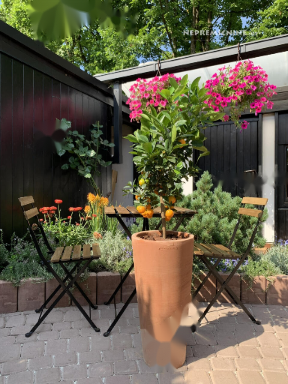 Эстетически оформленный двор включает новую террасу с деревянными настилом и современным садовым оборудованием. Здесь расположены: зона отдыха под перголами, уличная кухня, обеденная зона, уголок для чтения и ароматный средиземноморский сад с местом для утреннего кофе. Предусмотрено пространство для внешней ванной и душа. Доступ к дому и двору возможен как для легковых, так и грузовых автомобилей.