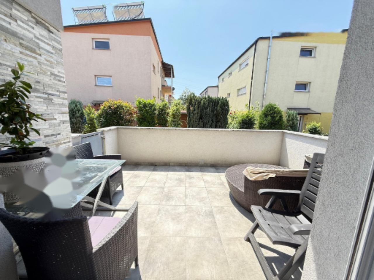 Жилая площадь составляет 169 м², остальное пространство занимают террасы, балконы, неиспользуемое чердачное помещение и гараж.