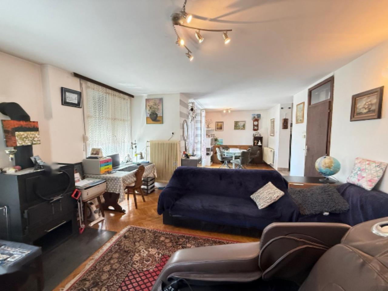 Предлагается просторный одноэтажный дом в районе Томачево площадью 299,4 м², расположенный на участке 509,1 м². Построенный в 1977 году и обновлённый в 2015 году, дом предлагает комфортное проживание в зелёной зоне, на тихой улице.