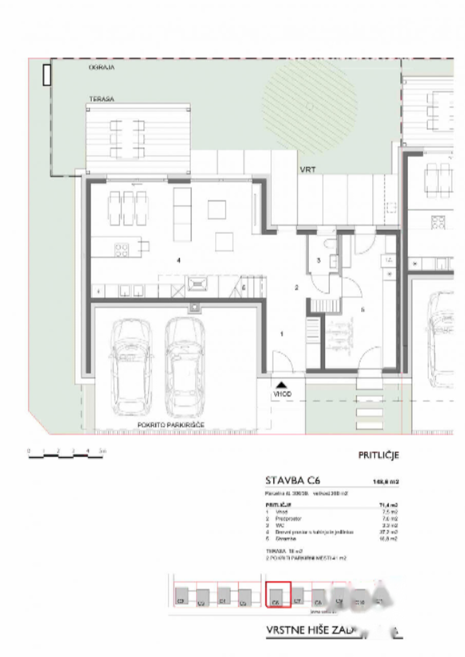 Представляем вашему вниманию новое предложение — современный дом с террасой в развивающемся жилом районе Згомняя Задоброва, недалеко от восточной окружной дороги Любляны. Дом площадью 148,58 м², построенный в 2025 году, располагается на участке 260 м². Это двухуровневый дом, с гаражом для двух автомобилей и отдельной кладовой.