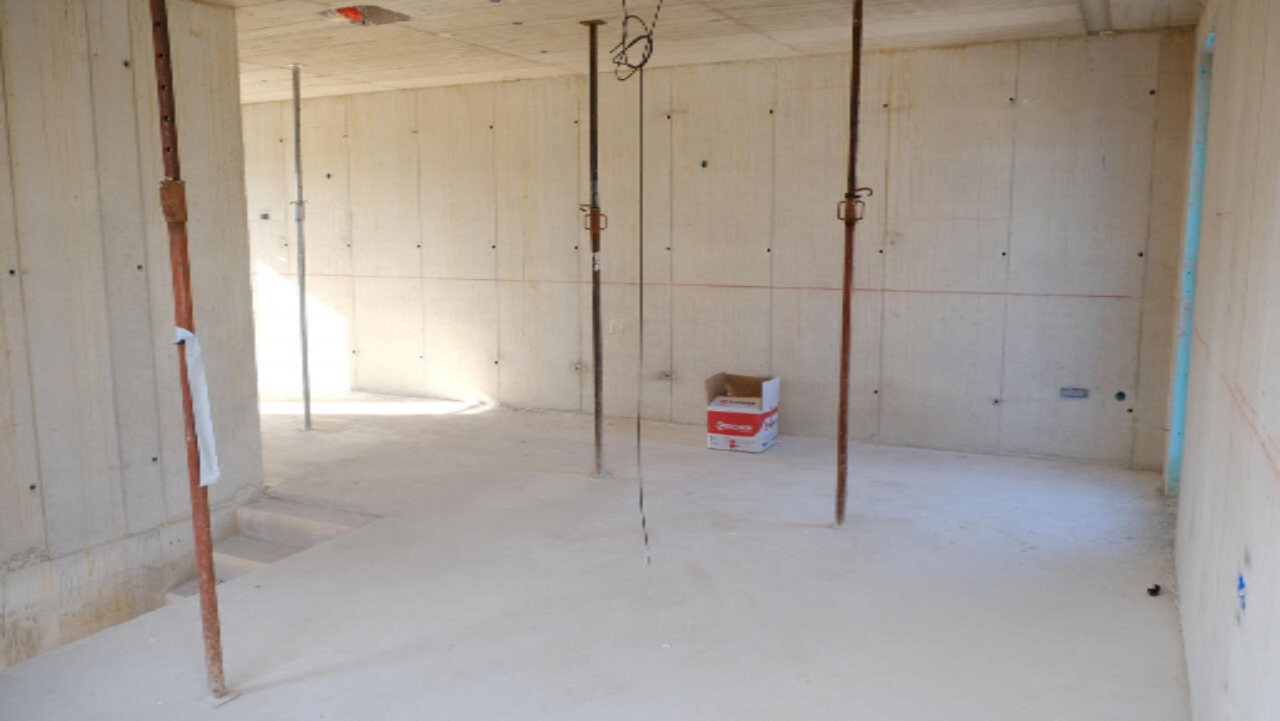 Внутри дома функциональная планировка: первый этаж (71,44 м²) включает в себя вход, холл, отдельный туалет, кладовую, гостиную с кухней и столовой, террасу и сад. На втором этаже (77,14 м²) расположены коридор, три спальни, кабинет или дополнительная спальня, и две ванные комнаты.