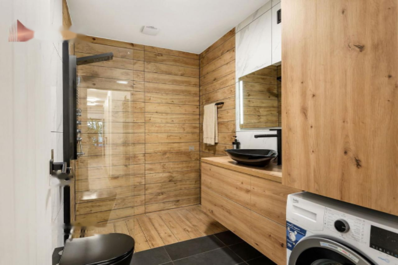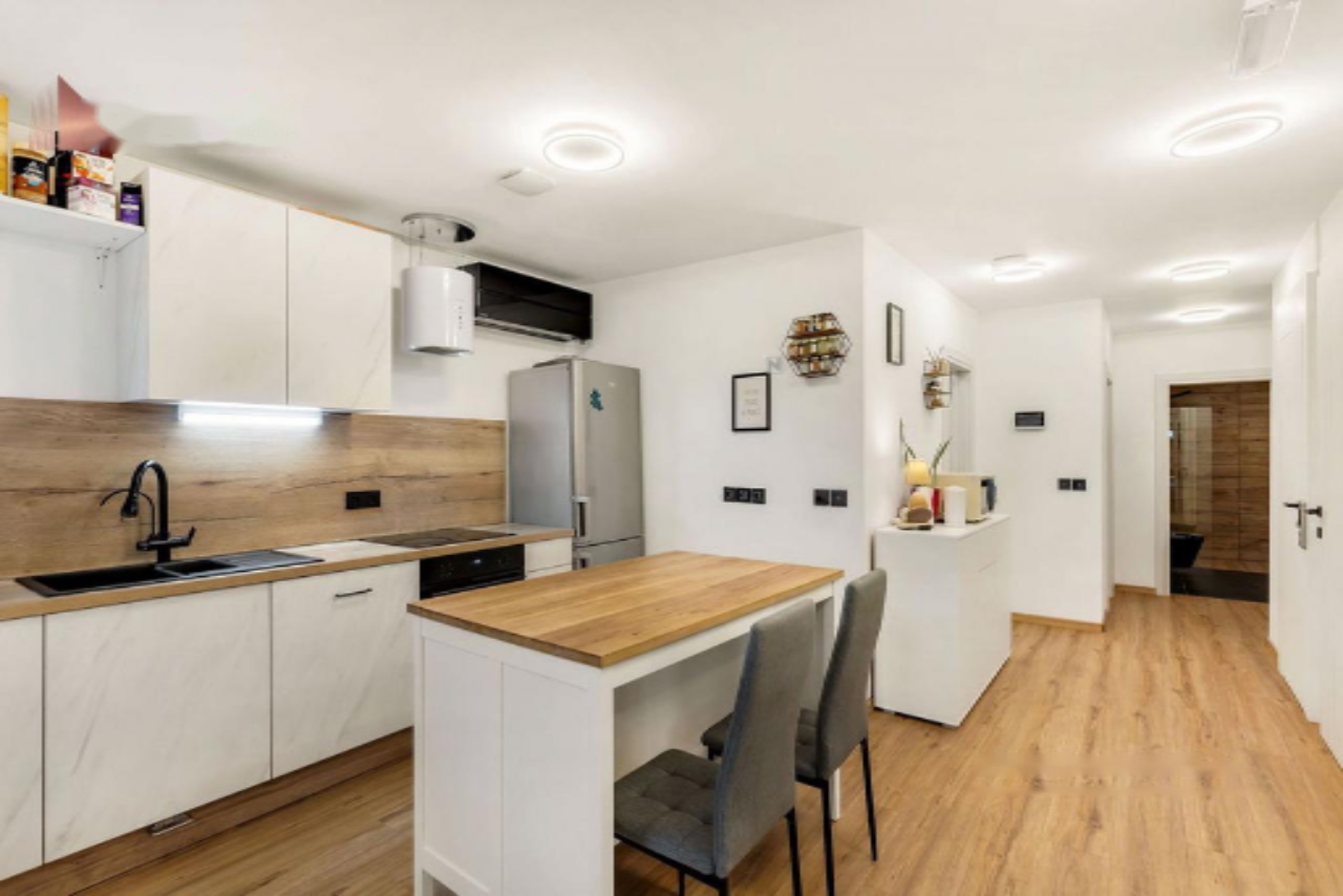Идеальное пространство на первом этаже включает в себя гараж, ванную комнату, котельную, коридор и вестибюль. Первый этаж площадью 58,37 м² располагает кухней с обеденной зоной, гостиной с выходом на уютный атриум площадью 80 м², спальней, ванной комнатой и небольшой комнатой. Второй этаж предлагает кухню с гостиной, туалет и роскошную спальню с ванной и душем. Третий этаж, площадью 63,48 м², включает велнесс-зону с сауной и террасу с джакузи и видом на гору Шмарна Гора.