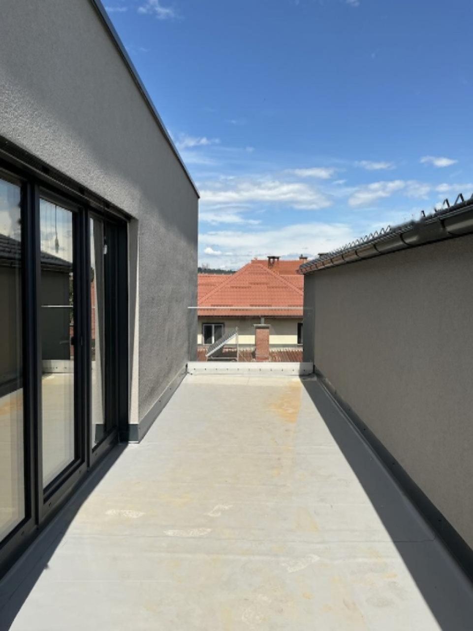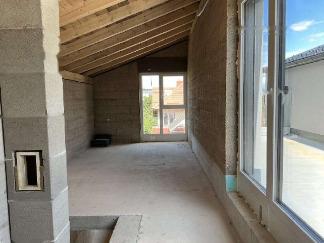 Дом является частью комплекса из четырёх новых домов с террасами, строение которых завершено до третьей стадии отделки. Он расположен на краю населённого пункта и имеет общую жилую площадь 164,8 м².