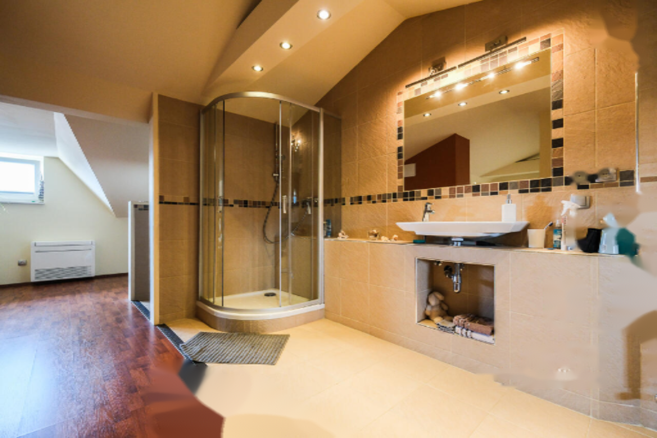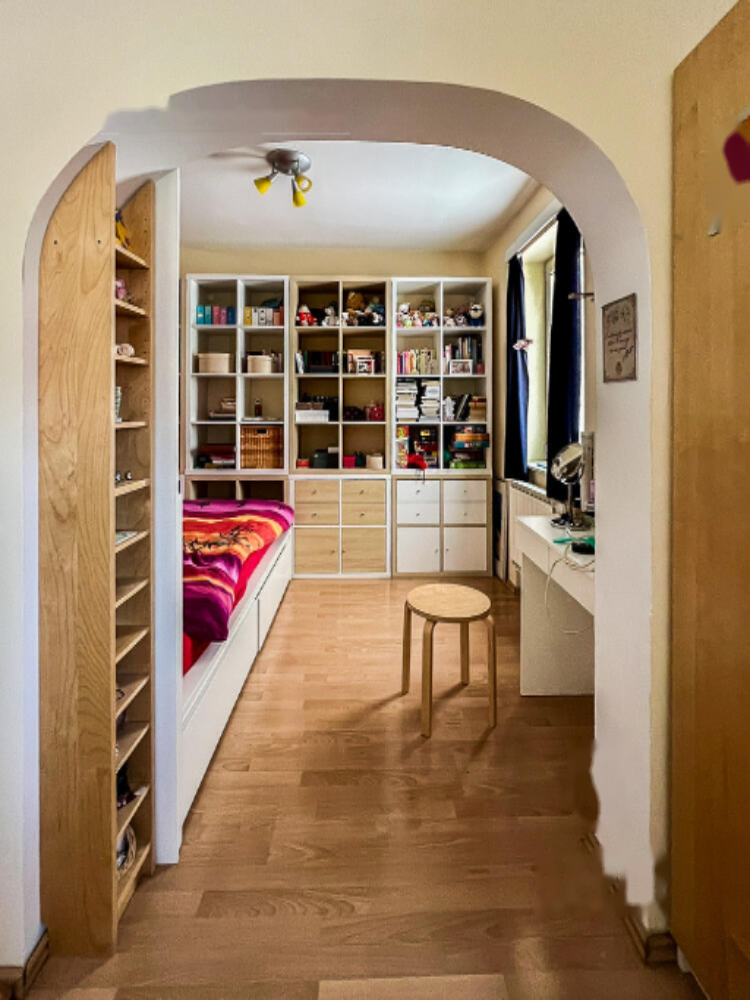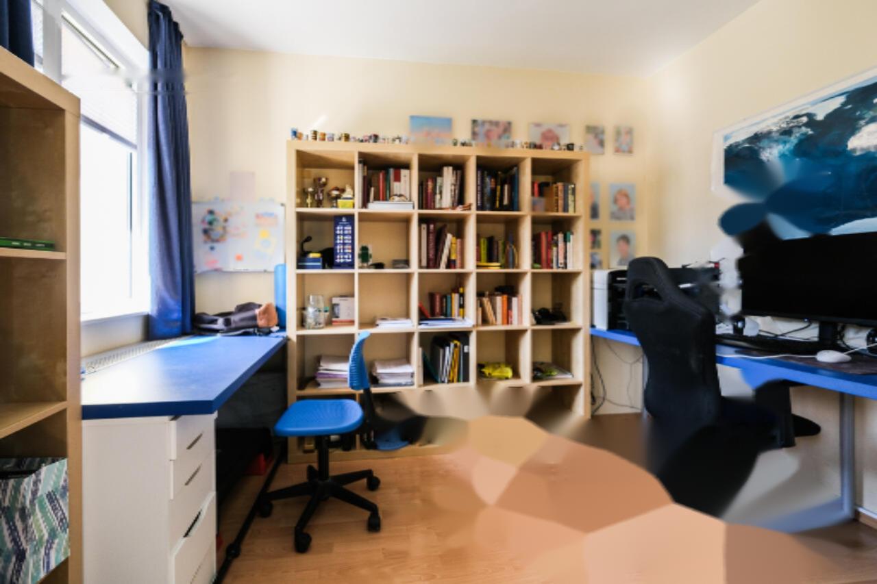 На полуподвале расположены гараж, котельная, кладовая и помещение для хранения велосипедов. Первый этаж включает в себя просторную прихожую и большую зону отдыха с кухней, столовой и гостиной, из которой имеется выход на террасу и сад. Также на этом этаже находятся хозяйственное помещение и отдельный туалет. Второй этаж состоит из двух детских комнат с выходом на балкон, двух спален и ванной комнаты с туалетом. Мансарда предлагает большую спальню с ванной и гардеробной комнатами.