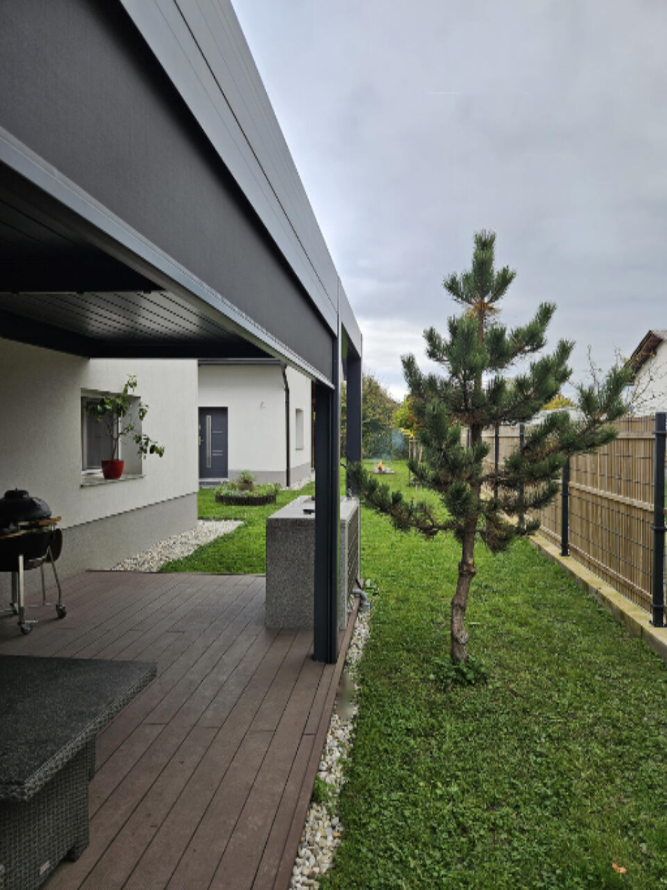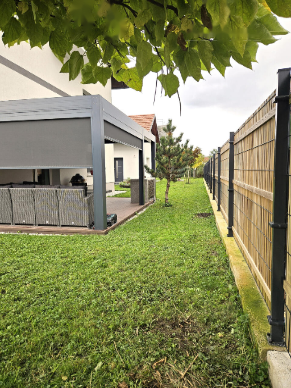 Просторный внутренний двор с плодоносными и декоративными деревьями обустроен системой полива. Участок украшает терраса с биоклиматической перголой и летней кухней, что делает его невероятно комфортным для отдыха . Имеется парковка на 7 автомобилей и дополнительное строение в 90 м², которое может быть преобразовано в жилое пространство.