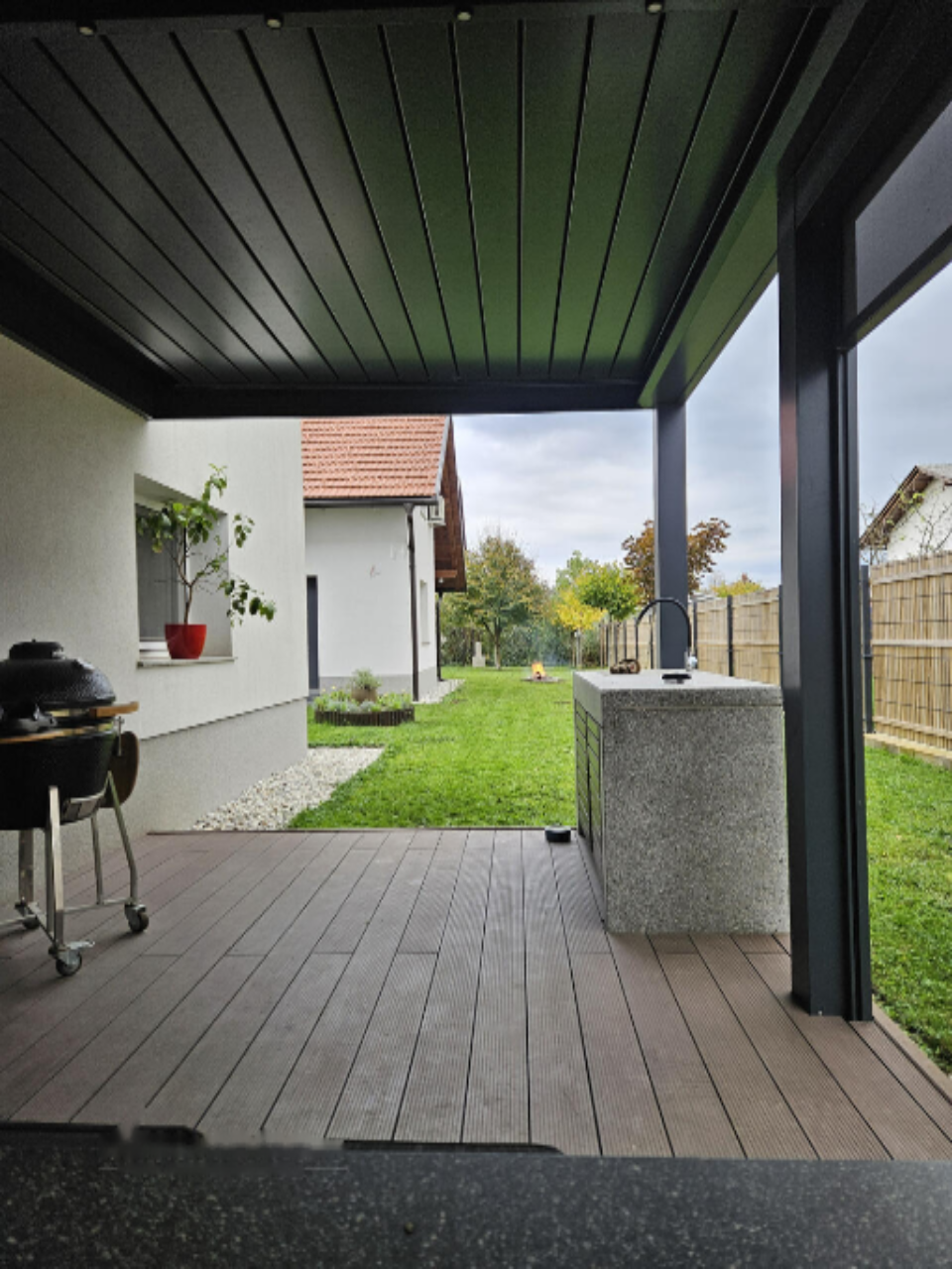 Основное здание площадью 180 м² выполнено с высококачественной отделкой. Благодаря свежей реконструкции в 2023 году, дом оснащен современной инженерной инфраструктурой: новая тепловая изоляция, фасад, полы, тёплые полы, качественный паркет, электропроводка и водопроводные коммуникации. Установлены новые трехслойные окна, тепловой насос Daikin для отопления, а также система видеонаблюдения.