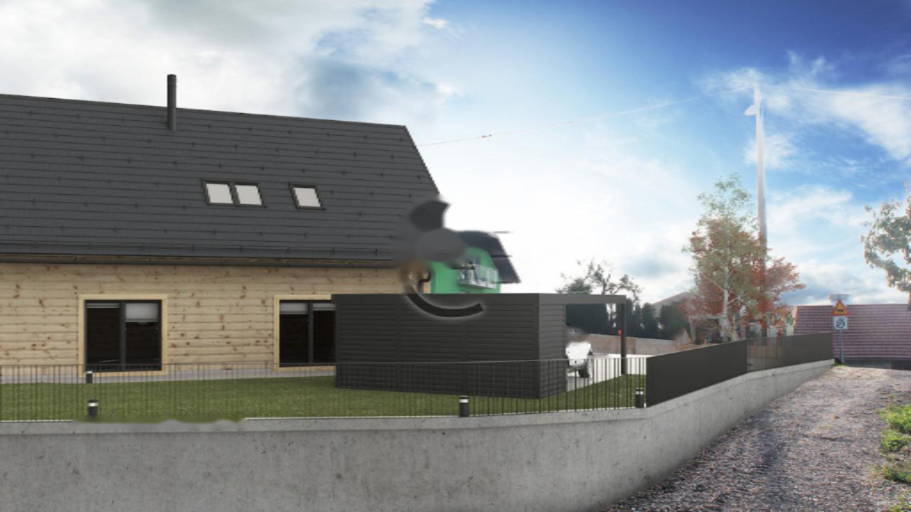 Дом оборудован подогревом пола и климат-контролем с тепловым насосом «воздух-вода» мощностью 8 кВт. Водонагреватель объемом 170 литров также входит в комплект. Большие окна обеспечат естественное освещение, а металлическая крыша Tondach эффектно завершает архитектурный образ. Возле дома предусмотрен навес для двух автомобилей, а территория будет озеленена и дополнена декоративными деревьями.