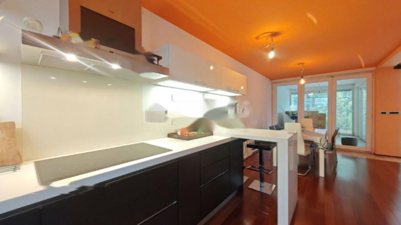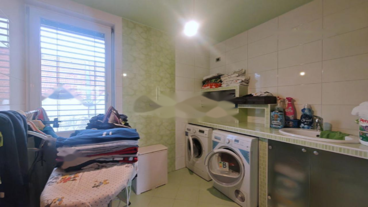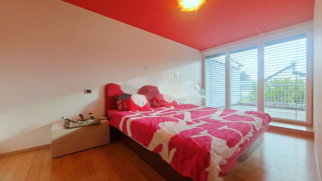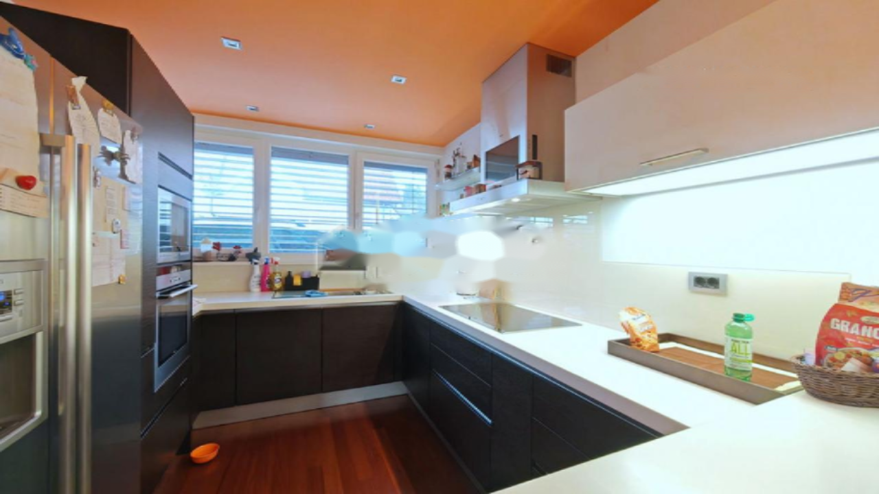 Дом включает в себя просторное дворовое пространство с двумя парковочными местами, двумя гаражами, котельной с газовой системой отопления и кладовкой. Первый этаж прекрасно спланирован: просторный вестибюль с гардеробом ведет в большую гостиную, совмещенную с кухней и столовой, которая открывается в зимний сад и зелёный атриум. Второй этаж располагает тремя просторными детскими комнатами, хозяйственным помещением и большой ванной комнатой с джакузи и душем с турецкой сауной. Главная спальня имеет выход на террасу и вместительную гардеробную. Мансарда оборудована как фитнес-зал и дополнительный кабинет.