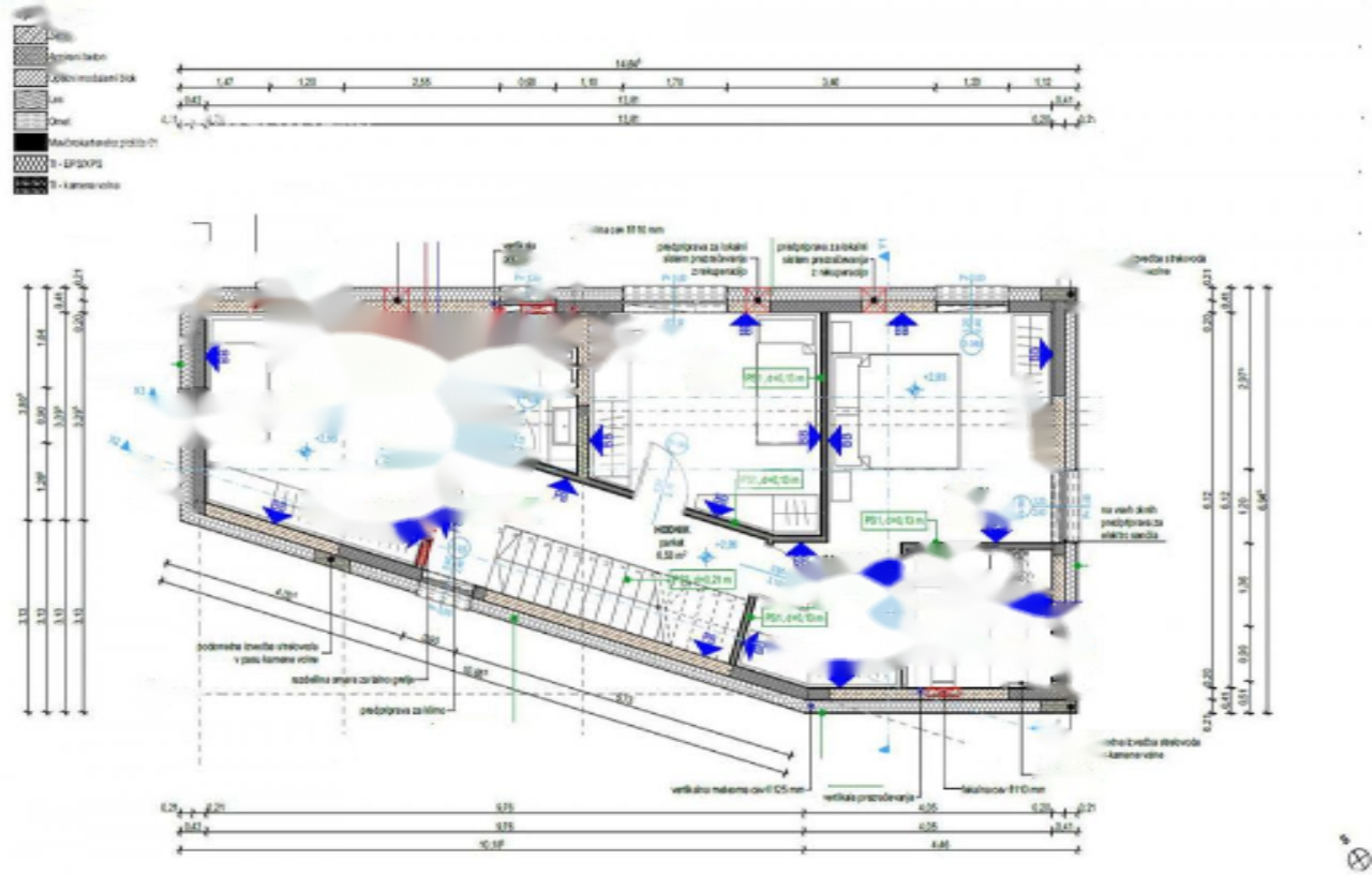 Конструкция дома использует ободные несущие стены, что позволяет практически свободно изменять планировку. Дом выполнен в классическом стиле. Армированный бетонный фундамень обеспечивает прочность, а деревянная крыша придаёт дополнительный очаровательный акцент. Установлены системы водоснабжения и отопления через тепловой насос и система тёплого пола для низкого энергопотребления. Охлаждение обеспечивается сплит-системой. Дополнительное оборудование включает электрические конвекторы и вентиляция для каждого помещения.