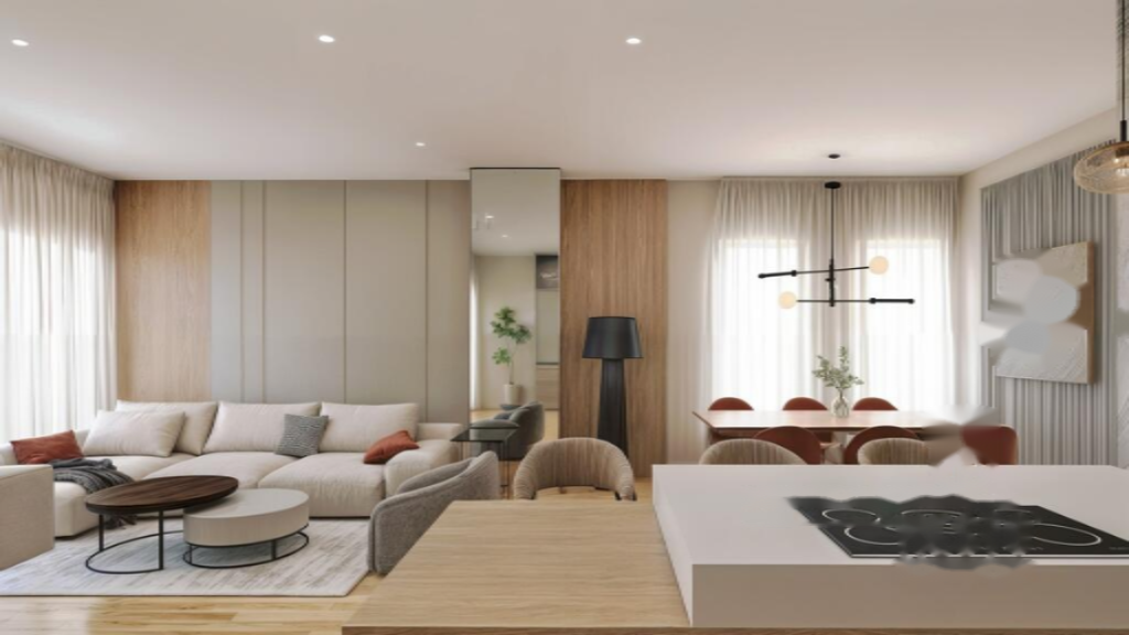 Дом выделяется просторным интерьером с большим количеством стеклянных элементов и функциональной планировкой. Просторная гостиная с кухней и столовой ведет на террасу и уютный дворик. На втором этаже расположены три спальни и две ванные комнаты. Благодаря современной системе отопления с тепловым насосом и централизованной вентиляции с рекуперацией, дом обеспечивает комфортную атмосферу.