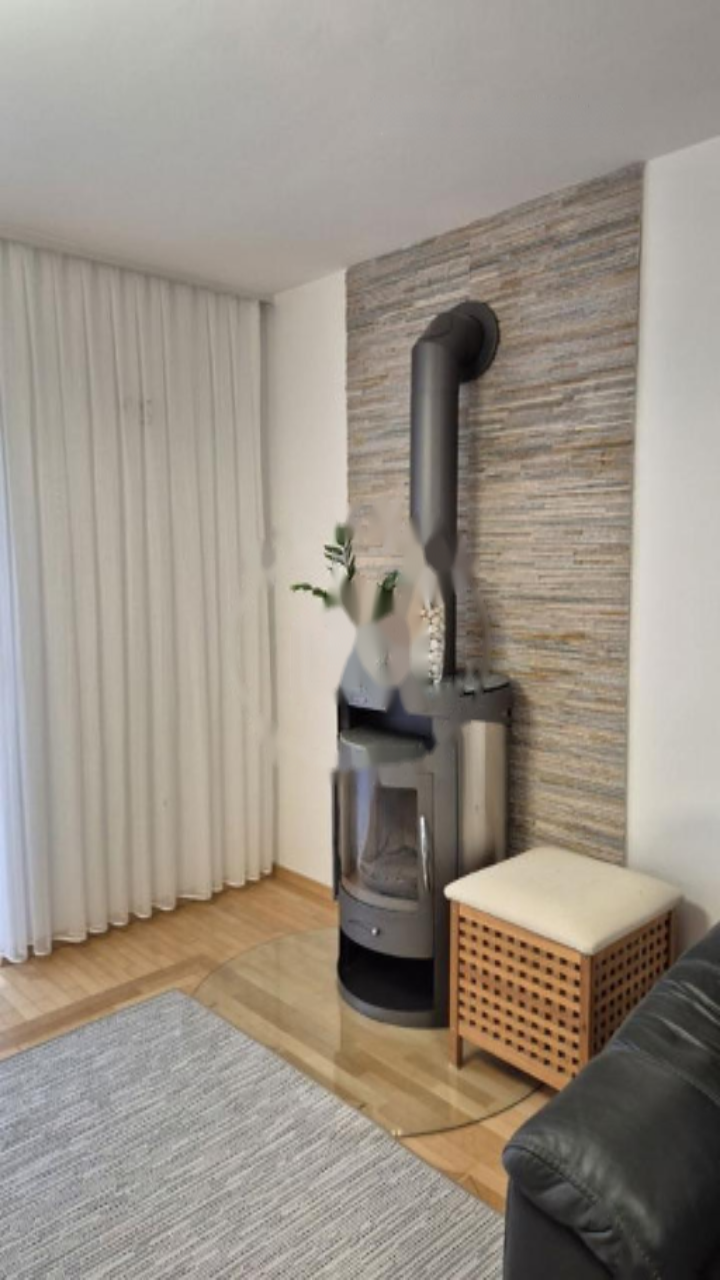 Дом имеет трехуровневую конструкцию: подвал, первый этаж и второй этаж. В подвале расположена котельная с тепловым насосом, установленным в 2019 году, а также вспомогательное техническое помещение. На первом этаже находятся прихожая с гардеробом, отдельный туалет, ванная комната (обновлена в 2023 году), кухня с обеденной зоной и гостиная с дровяной печью. Второй этаж включает в себя две просторные спальни и туалет.