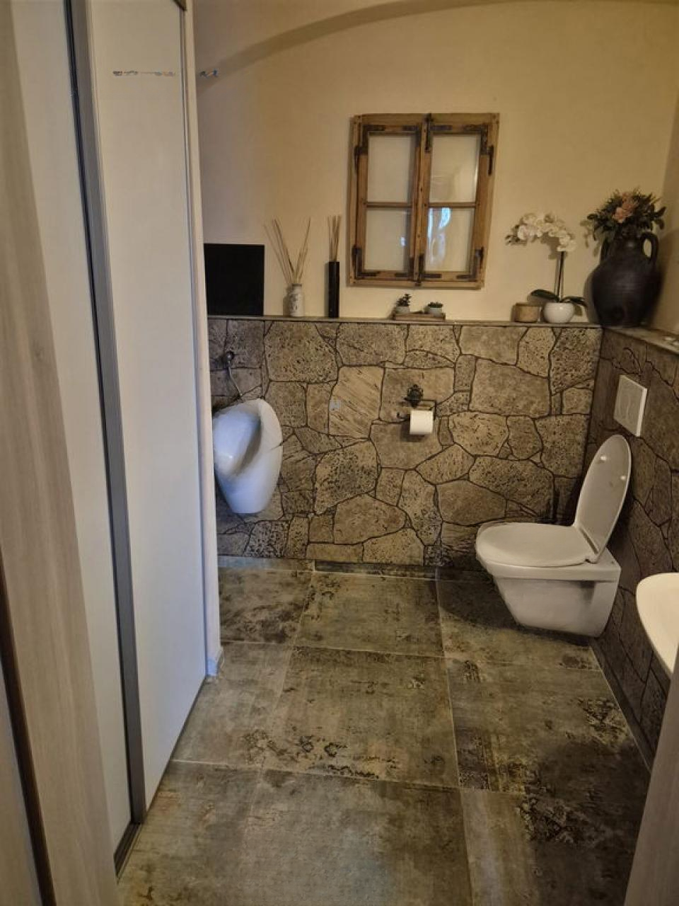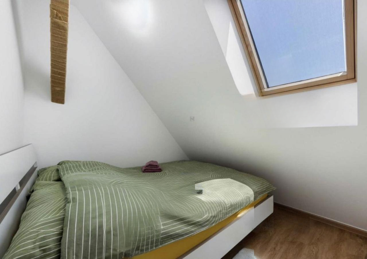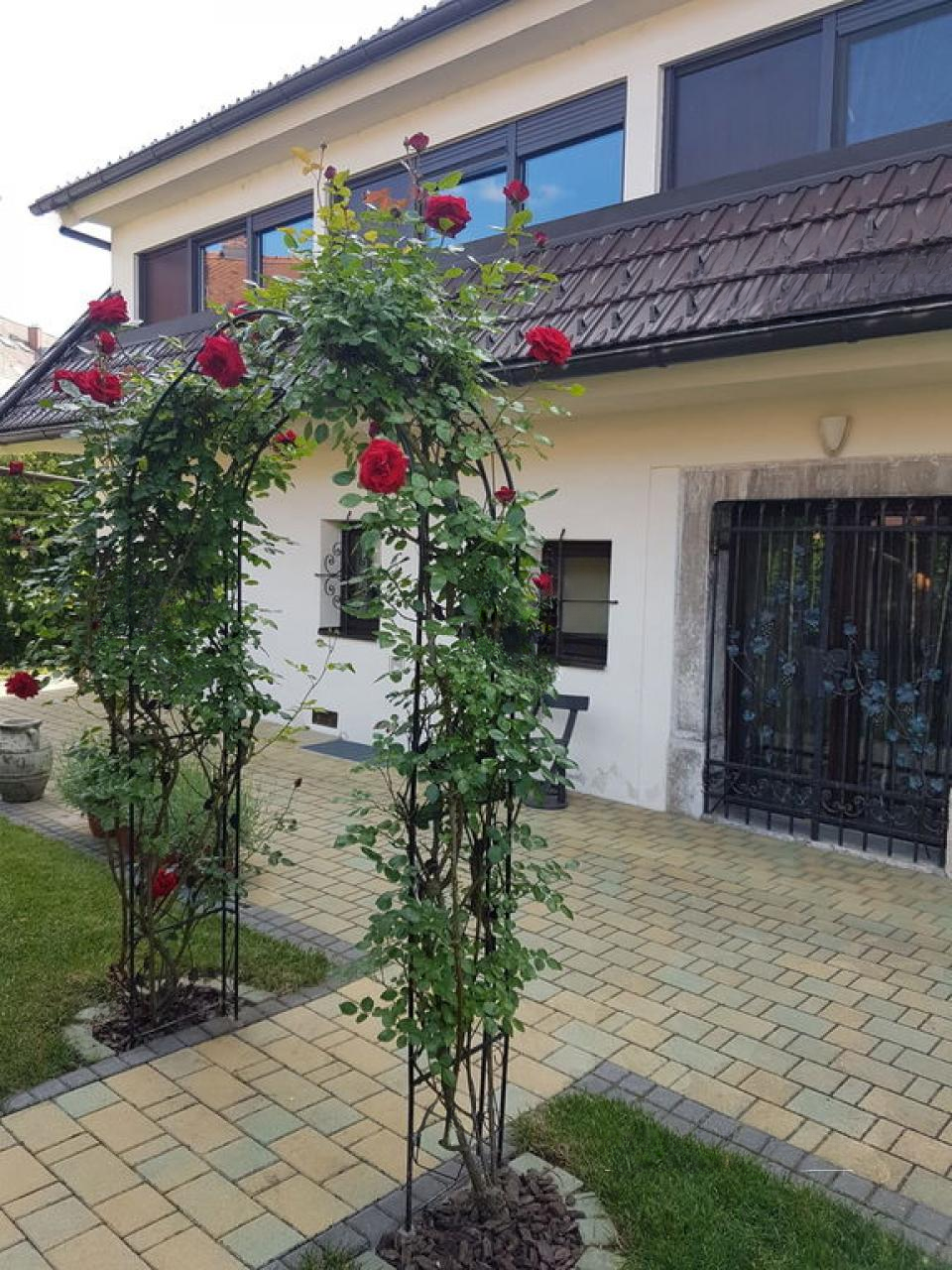 На верхнем этаже расположены три детские комнаты, главная спальня и просторная ванная комната с туалетом. Над гаражом, переоборудованным в фитнес-зал (площадью примерно 30 м²), находится полностью новое самостоятельное жилое помещение площадью около 35 м² с собственным входом и ограждённым участком сада, что обеспечивает полную приватность.